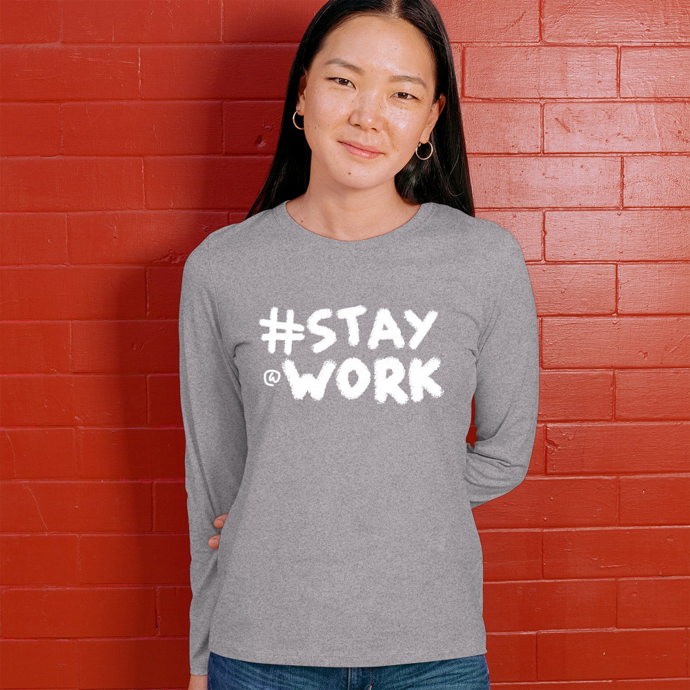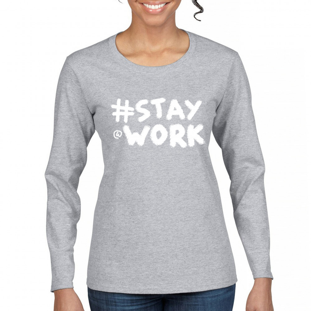 STAY AT WORK FUNNY ELON MUSK TWEET PARODY women's long sleeve t-shirt sarcasm gray