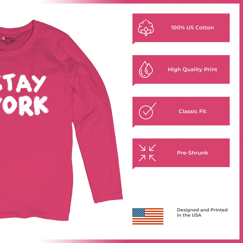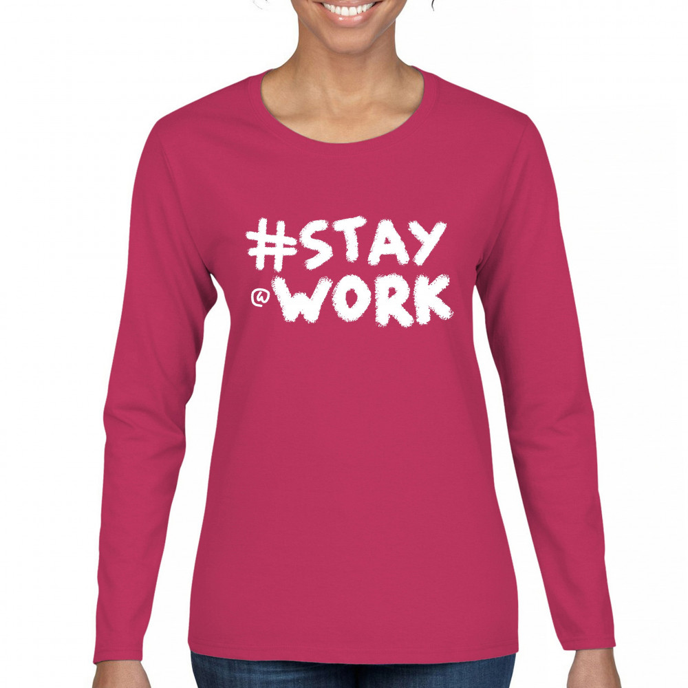 STAY AT WORK FUNNY ELON MUSK TWEET PARODY women's long sleeve t-shirt sarcasm pink