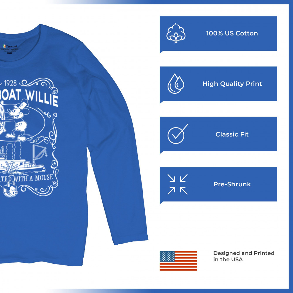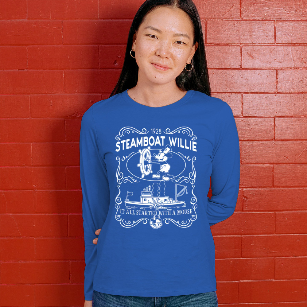 Navigate the waters of nostalgia with Steamboat Willie at the helm, accompanied by the enduring reminder, 'The magic traces back to a little friend.'