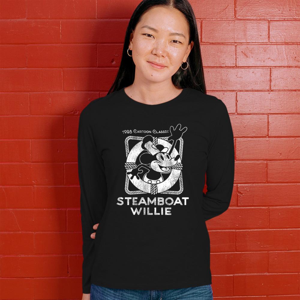 Channel the iconic charm of Steamboat Willie with our 'Steamboat Willie Vintage Life Preserver' tee. Perfect for beach days and family vacations, this design captures the magic of the 1928 classic. Whether you're lounging by the shore or patrolling as a l