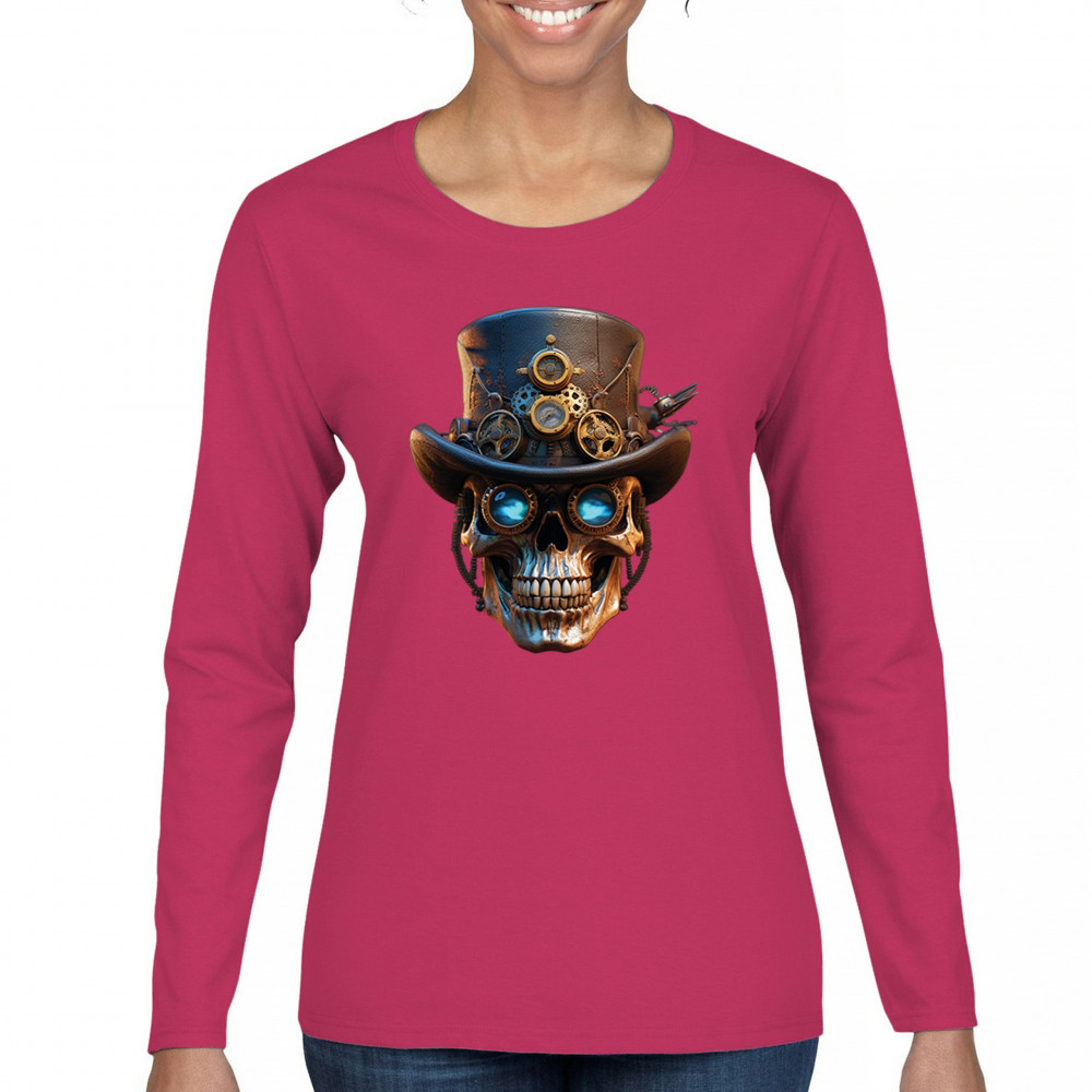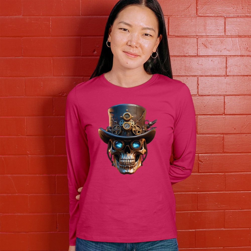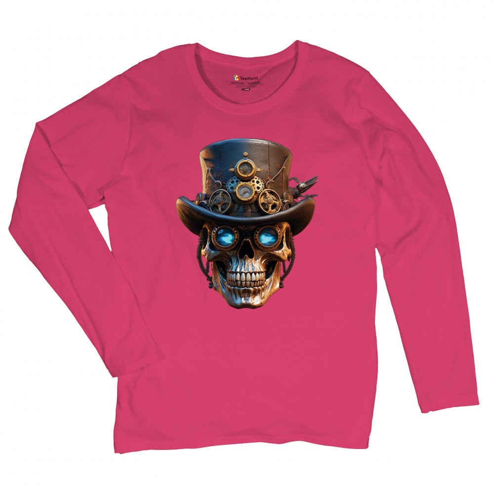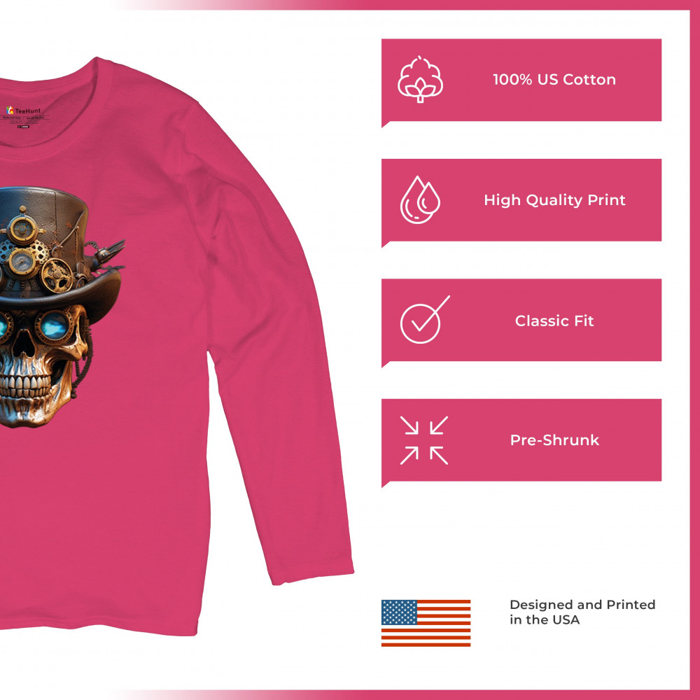 Steampunk skull shirt with gothic retro-futurism. Perfect for Halloween, cosplay, biker rallies, and edgy rebel fashion lovers.