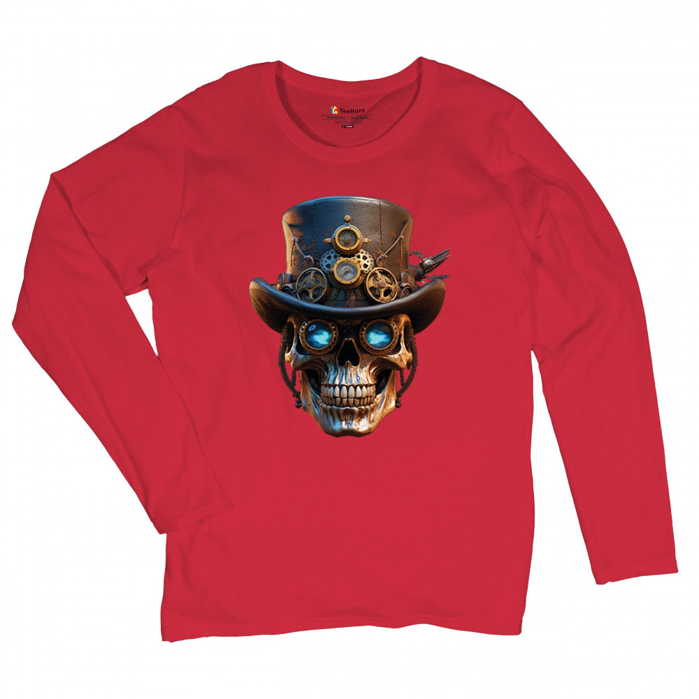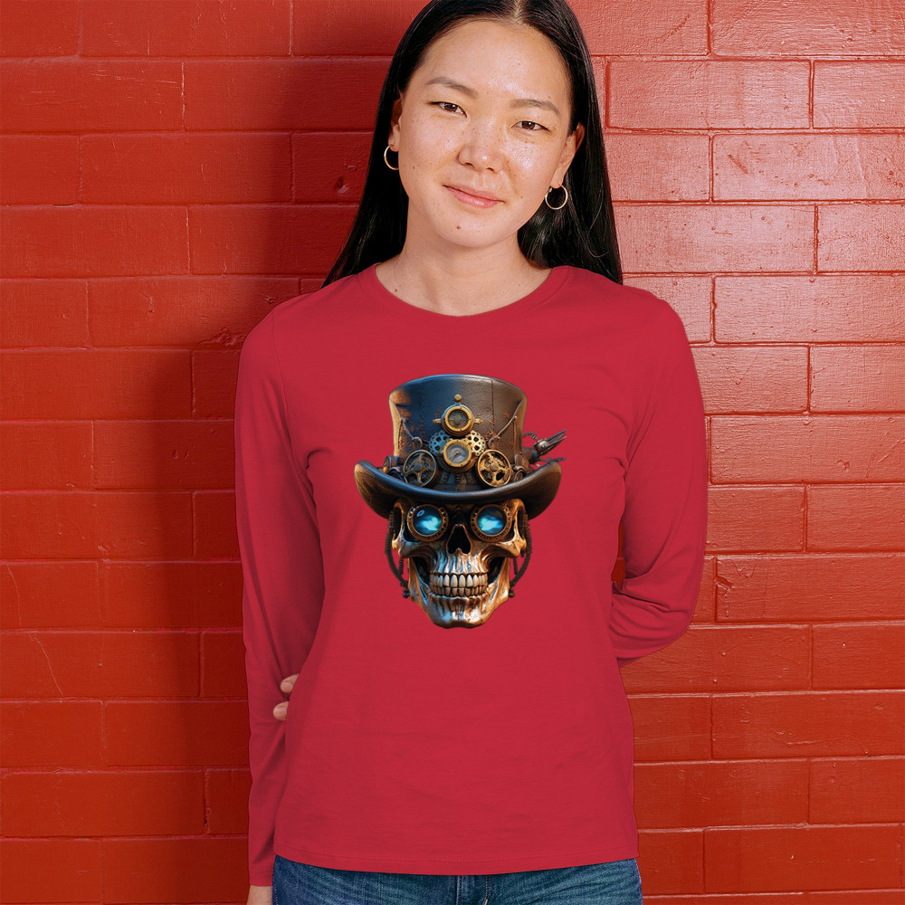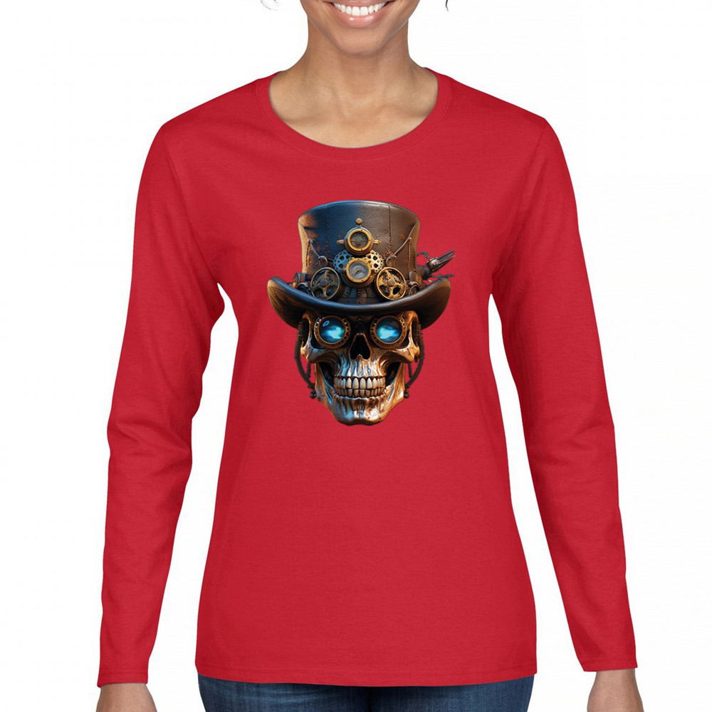 Steampunk skull shirt with gothic retro-futurism. Perfect for Halloween, cosplay, biker rallies, and edgy rebel fashion lovers.