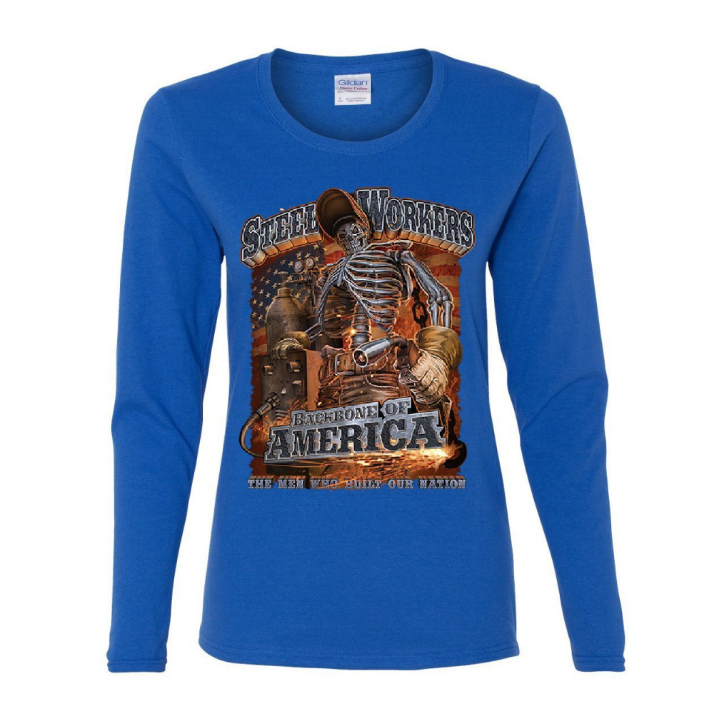 STEELWORKERS - BACKBONE OF AMERICA steel workers backbone of america women's long sleeve tee welding iron metal royal blue