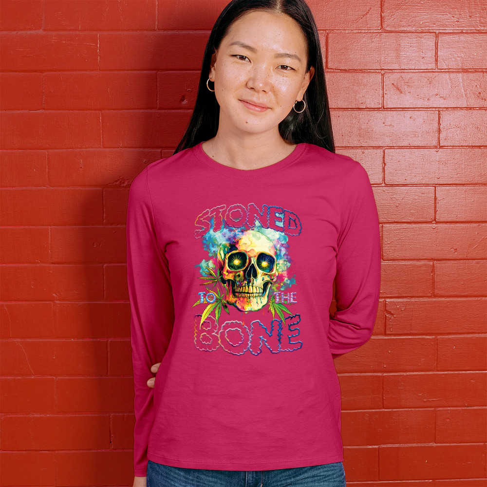 Turn heads with this bold, psychedelic “Stoned to the Bone†skull tee—loaded with neon colors, weed leaves, and a trippy aesthetic. It’s built for cannabis lovers, hippies, festival-goers, and party people living the high life. The ultimate head shop style and 420 fashion statement.