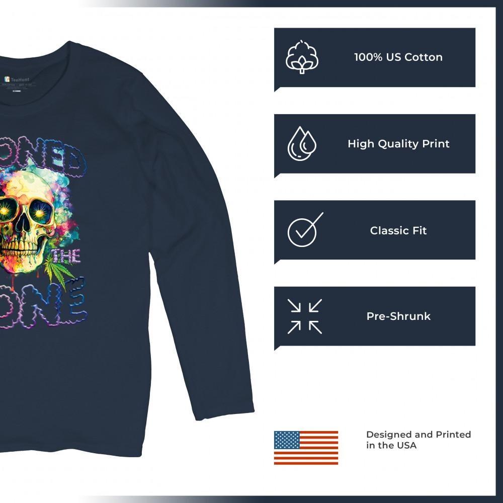 Turn heads with this bold, psychedelic “Stoned to the Bone†skull tee—loaded with neon colors, weed leaves, and a trippy aesthetic. It’s built for cannabis lovers, hippies, festival-goers, and party people living the high life. The ultimate head shop style and 420 fashion statement.
