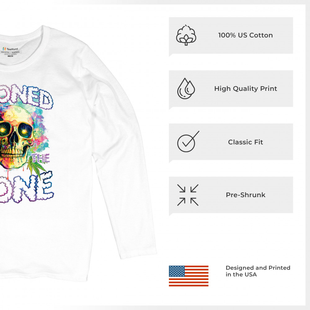 Turn heads with this bold, psychedelic “Stoned to the Bone†skull tee—loaded with neon colors, weed leaves, and a trippy aesthetic. It’s built for cannabis lovers, hippies, festival-goers, and party people living the high life. The ultimate head shop style and 420 fashion statement.