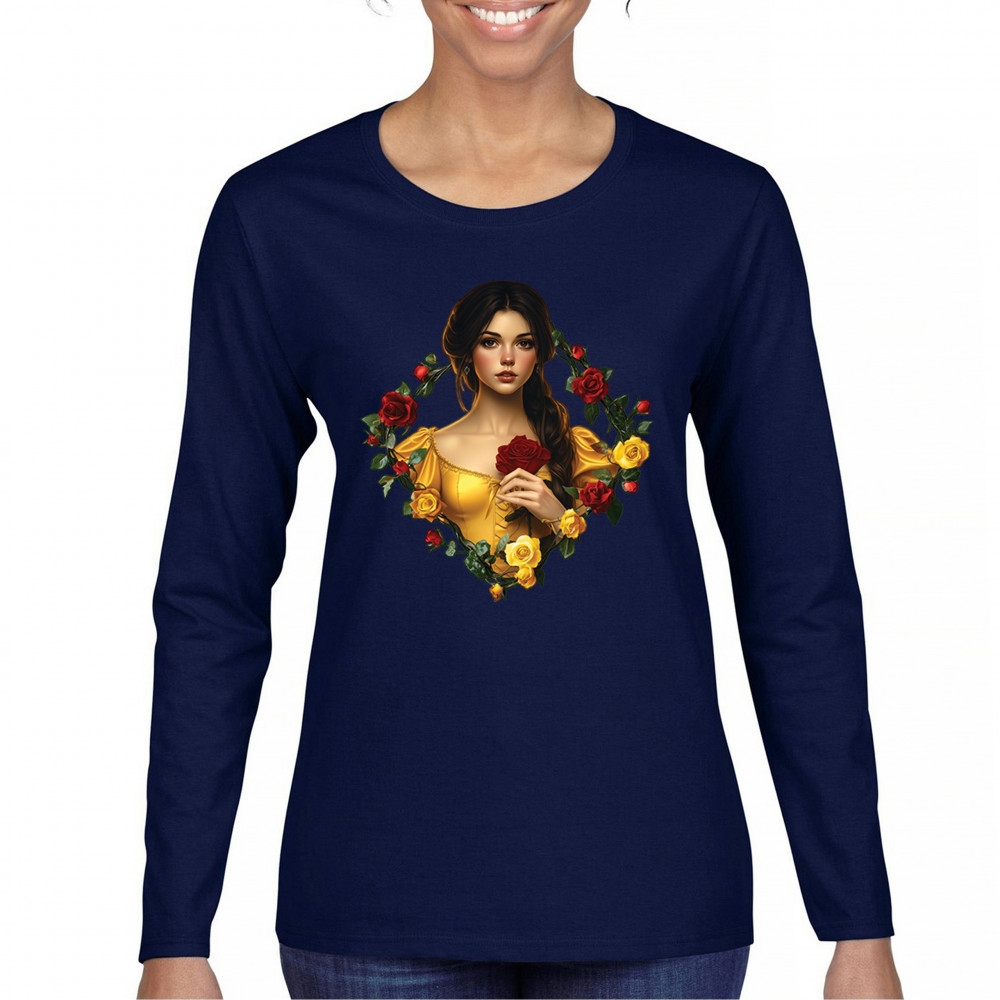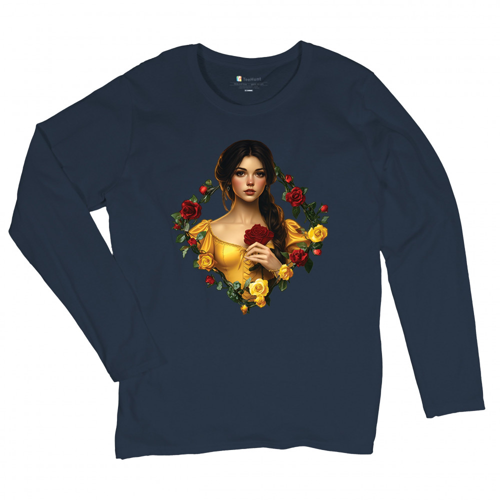 Inspired by classic fairytales, this design features a girl in a yellow gown holding a red rose, framed by rich red and yellow roses. A tribute to Beauty and the Beast, it radiates warmth, romance, and timeless fantasy. Perfect for storybook lovers, enchanted art collectors, or those drawn to magical, symbolic imagery filled with beauty and grace.