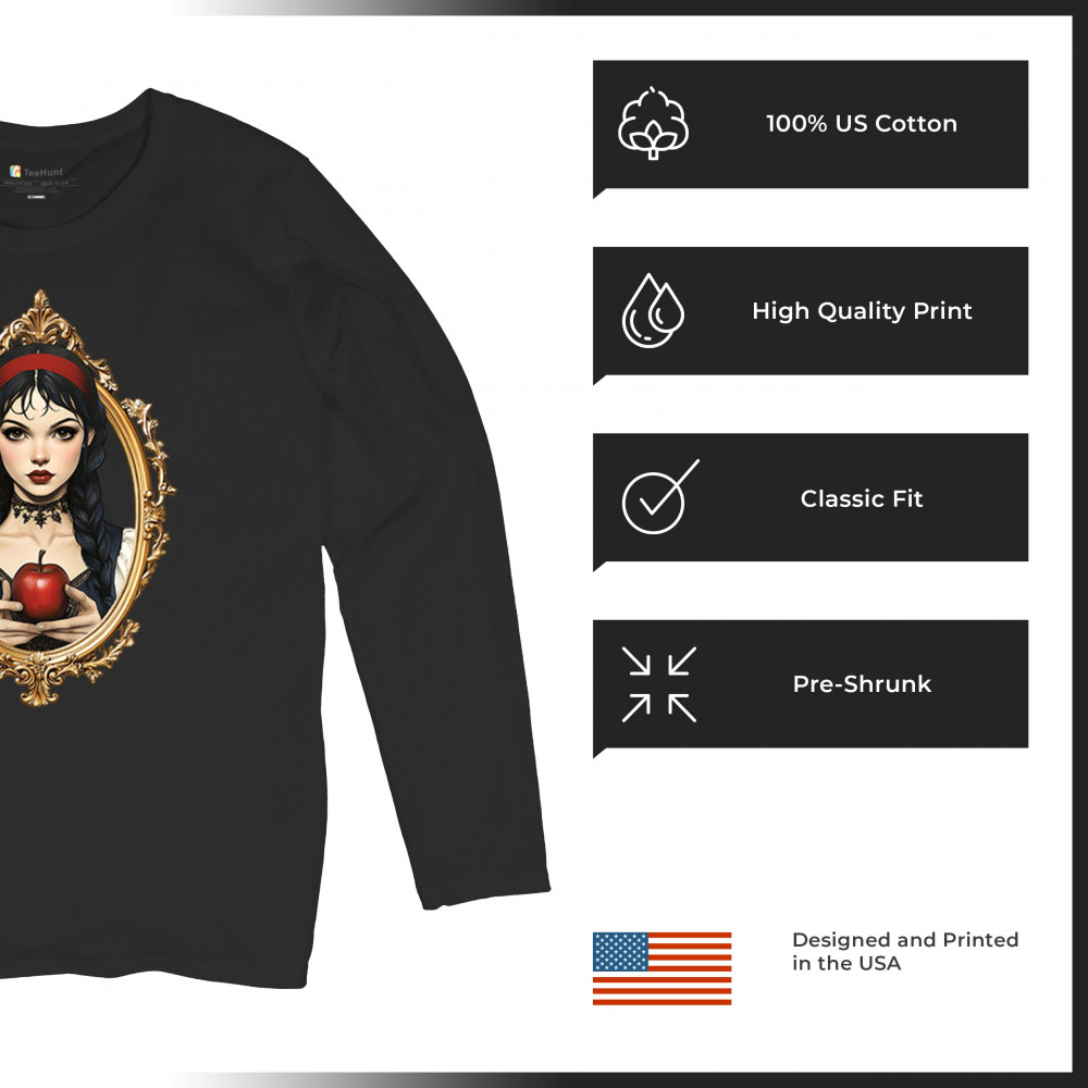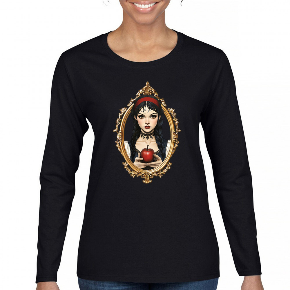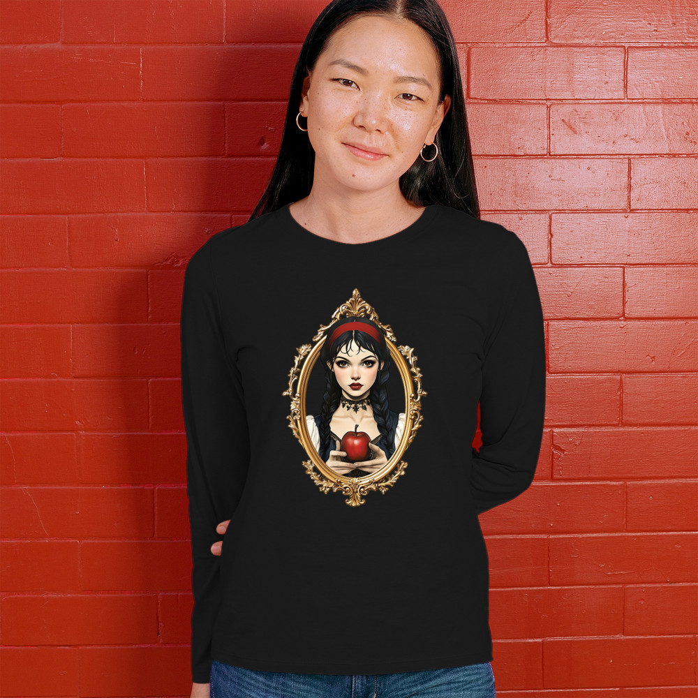 This enchanting design brings to life a gothic-inspired girl holding a red apple, encased in a regal vintage mirror frame. With elements pulled from Snow White, fairytales, and fantasy symbolism, it blends innocence and temptation with dark romanticism. Perfect for dreamers, collectors, and lovers of magical narratives and visual elegance.