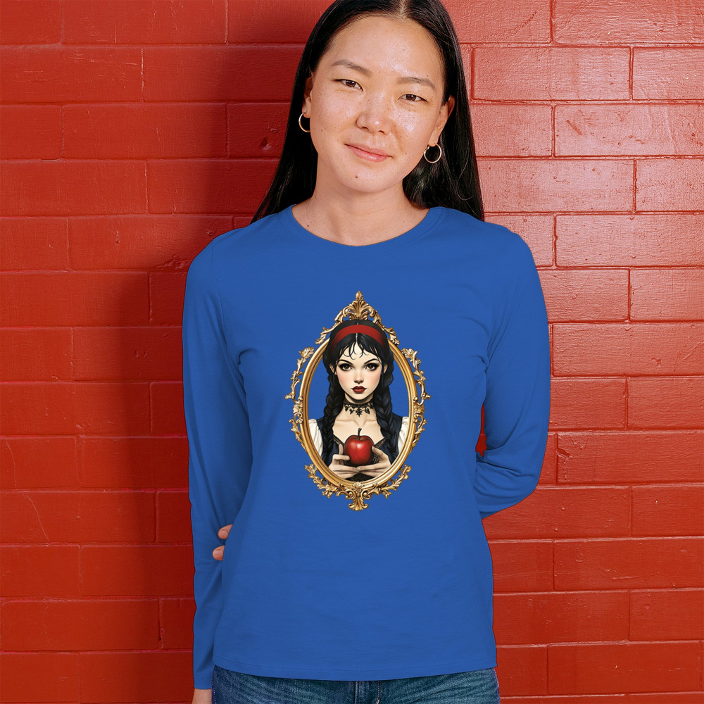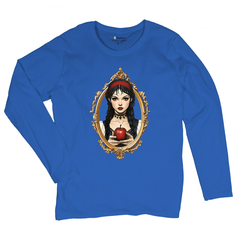 Dark fairytale design with red apple, gold frame, and Snow White vibes. A dreamy blend of fantasy, gothic style, and magical storytelling.
