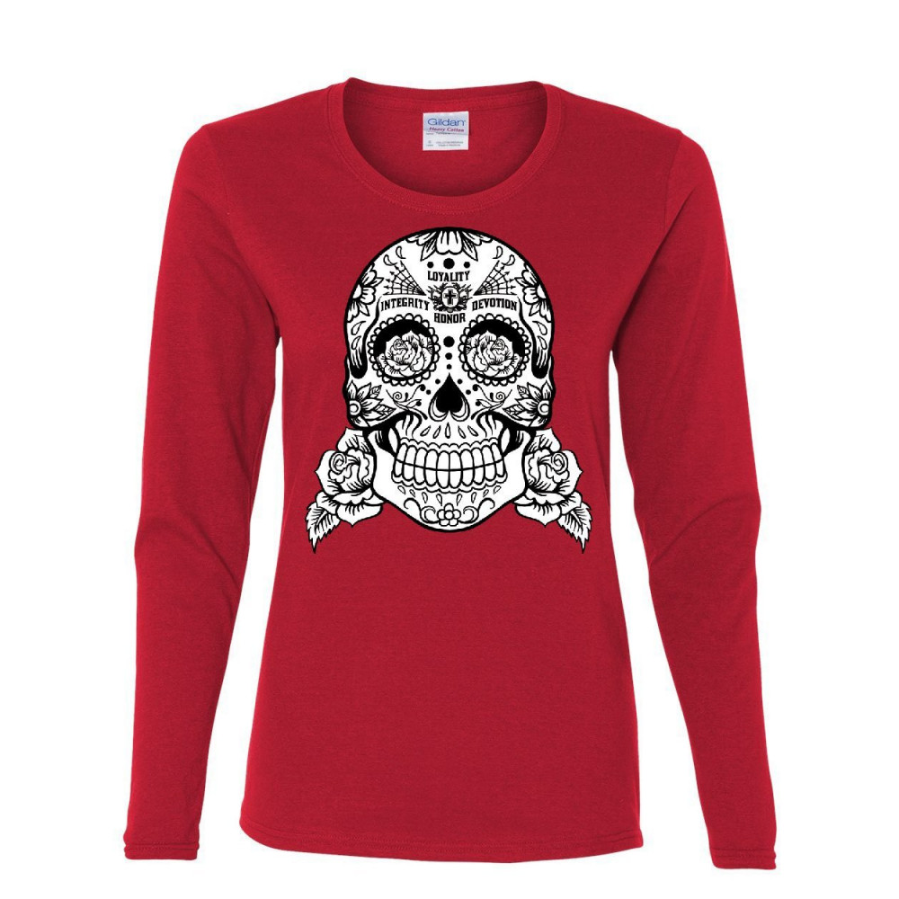 SUGAR SKULL long sleeve t-shirt loyalty integrity devotion honor red