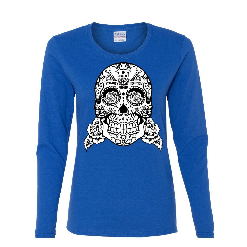 SUGAR SKULL long sleeve t-shirt loyalty integrity devotion honor royal blue