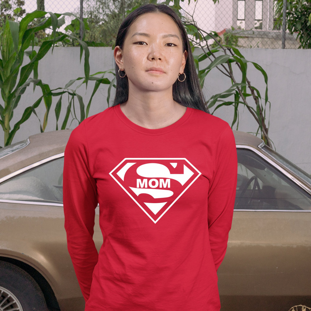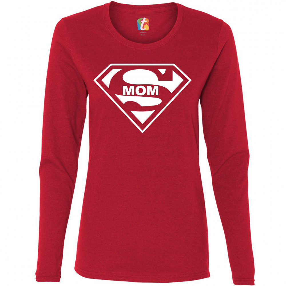 SUPER MOM FUNNY women's long sleeve t-shirt superhero parody mother's day red