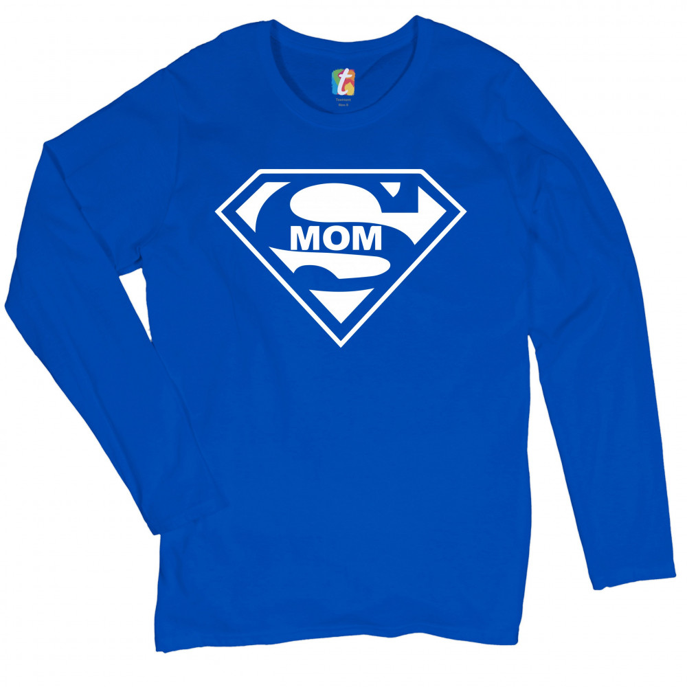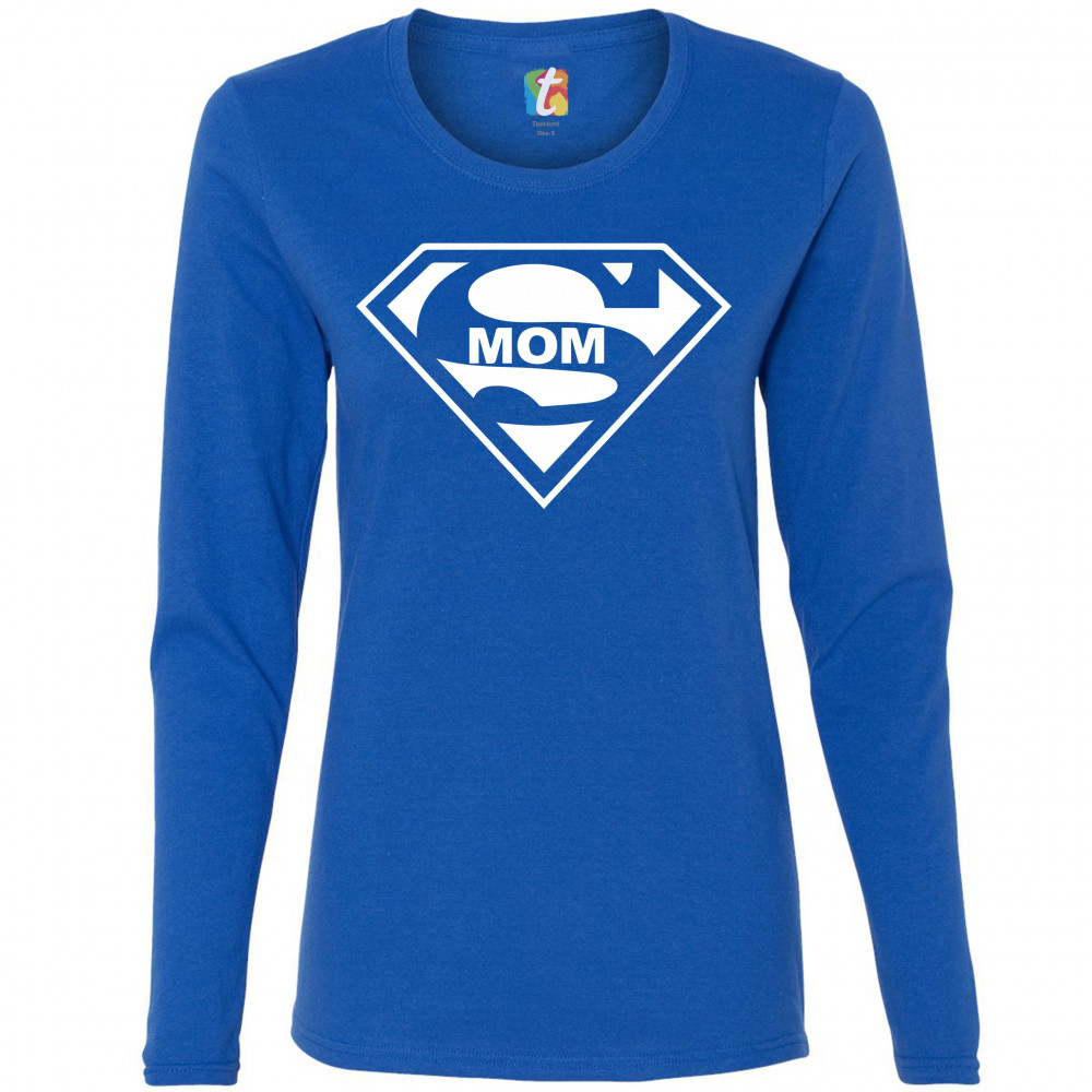 SUPER MOM FUNNY women's long sleeve t-shirt superhero parody mother's day royal blue