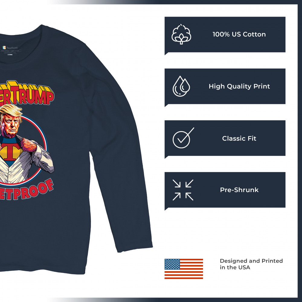 Celebrate the essence of strength with this bold SuperTrump design. Perfect for rallies or showing your support for the movement, this graphic tee speaks to patriots who embrace values like trust, faith, and freedom. With every wear, stand for conservative ideals and let everyone know you're part of an unstoppable wave of American pride. Whether at an event or around town, this shirt carries the message—never surrender, always move forward.