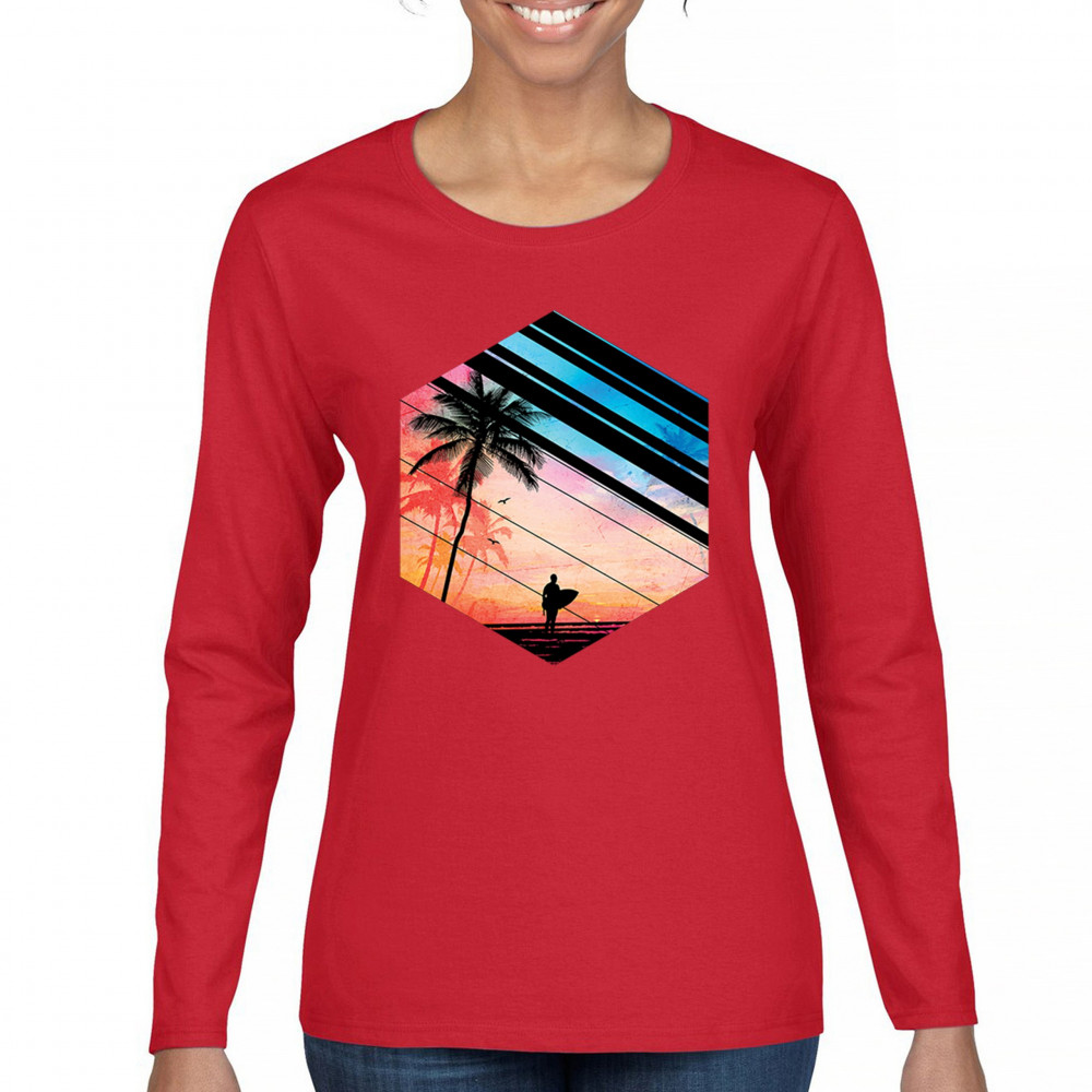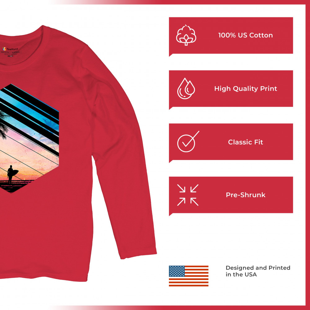 Catch the vibe of endless summer with our surf-inspired tee. Featuring silhouetted palms, warm gradients, and cool geometric shapes, it’s a visual journey from the urban grind to tropical tranquility. This tee is for the soul surfers and dreamers, made to be as enduring as the memories of your last wave. It's more than apparel—it’s a horizon of possibilities. Add this staple to your collection and let the good times roll.