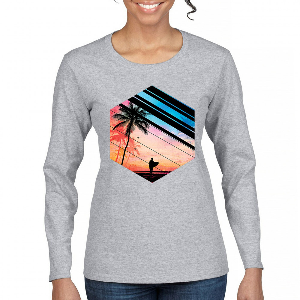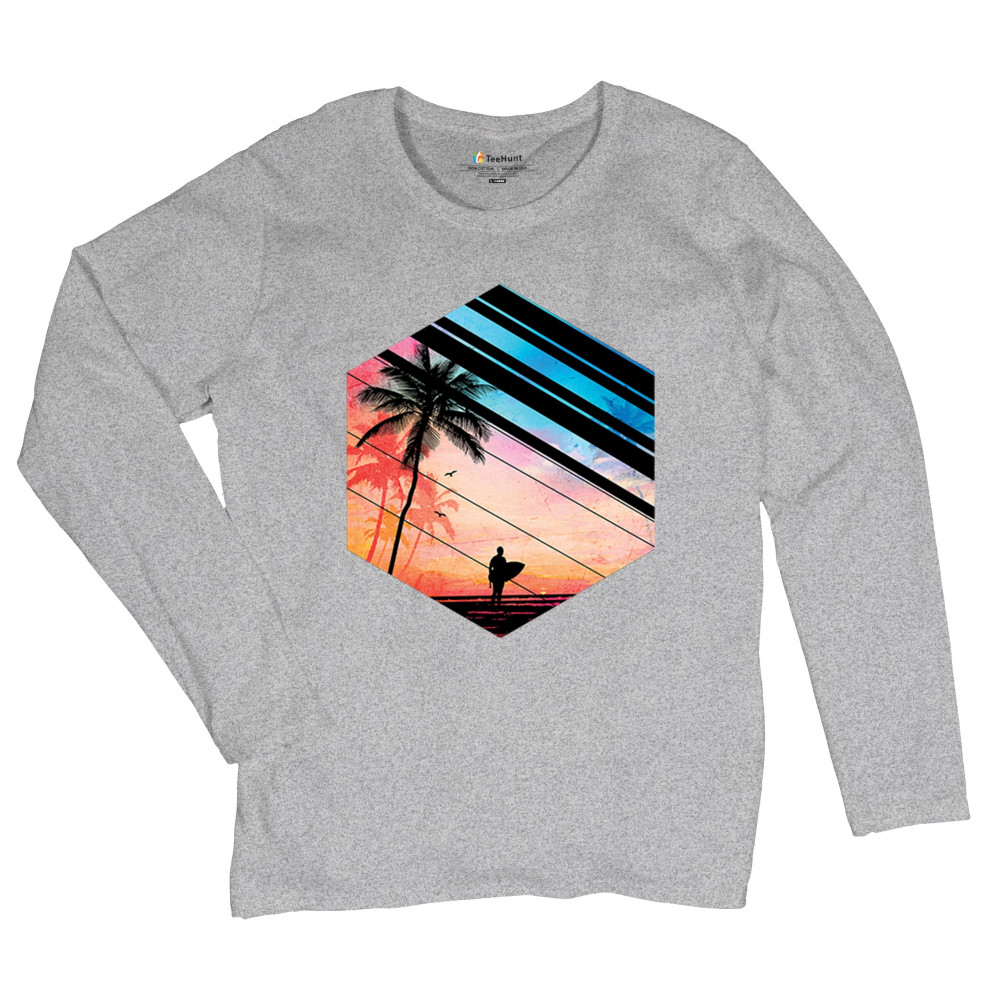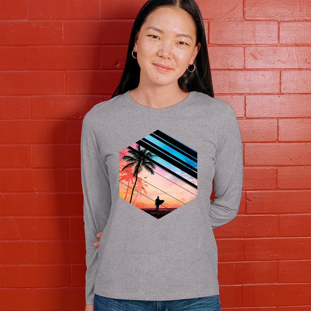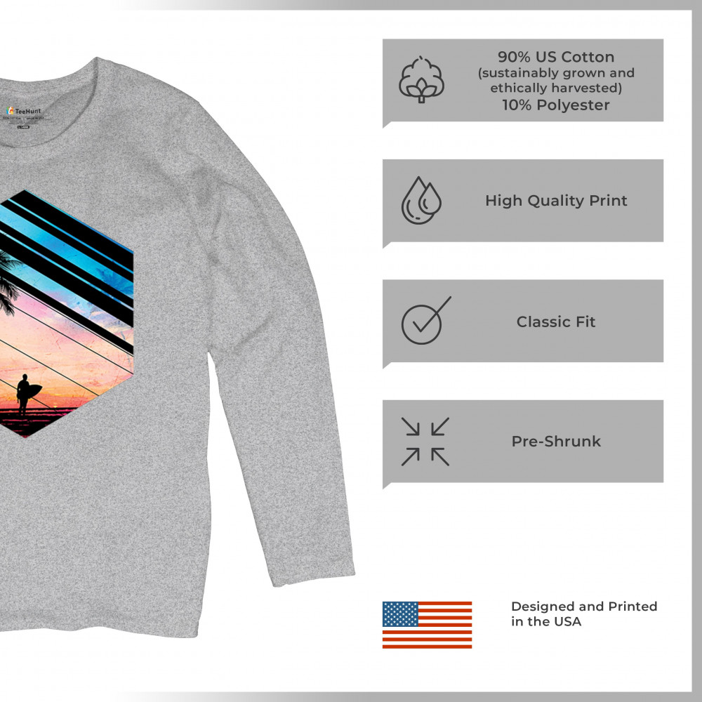 Catch the vibe of endless summer with our surf-inspired tee. Featuring silhouetted palms, warm gradients, and cool geometric shapes, it’s a visual journey from the urban grind to tropical tranquility. This tee is for the soul surfers and dreamers, made to be as enduring as the memories of your last wave. It's more than apparel—it’s a horizon of possibilities. Add this staple to your collection and let the good times roll.