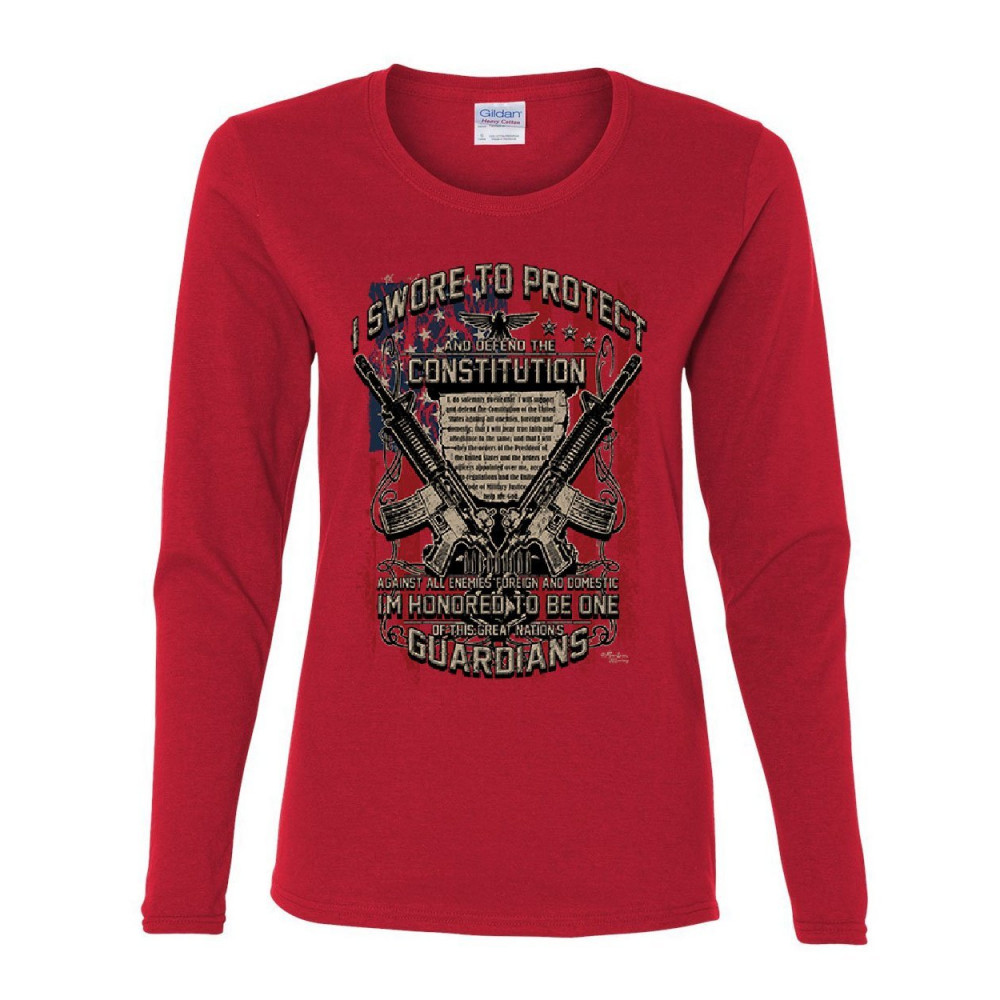 DEFEND THE CONSTITUTION swore to protect women's long sleeve tee guardian nation red