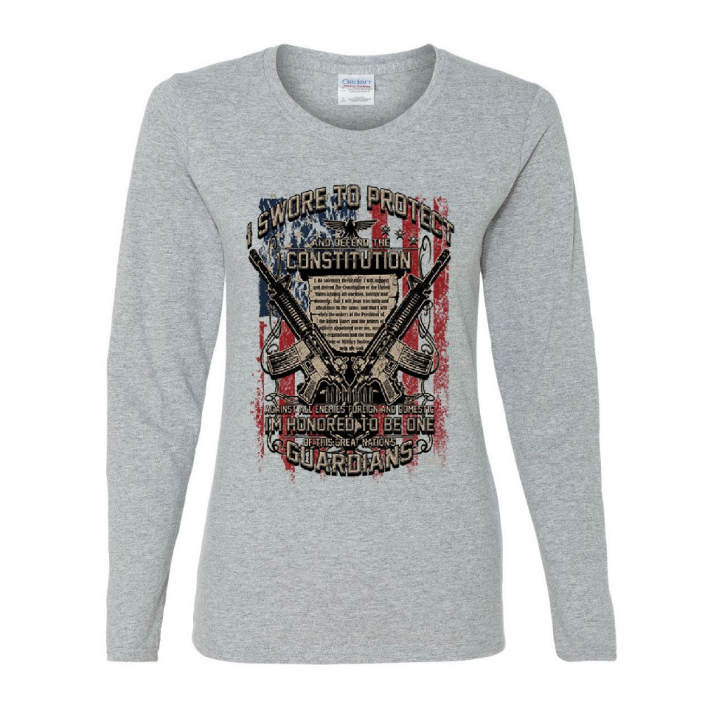 DEFEND THE CONSTITUTION swore to protect women's long sleeve tee guardian nation gray