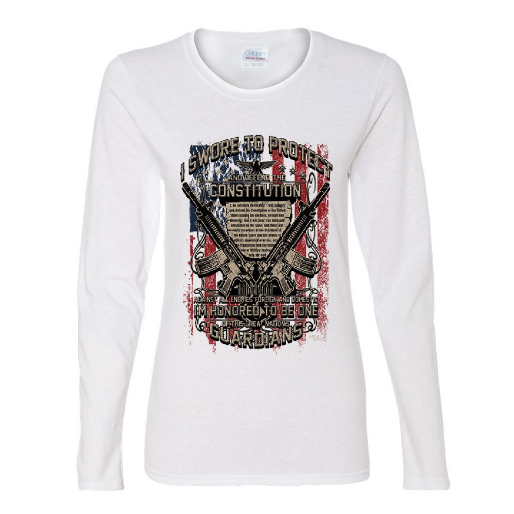 DEFEND THE CONSTITUTION swore to protect women's long sleeve tee guardian nation white