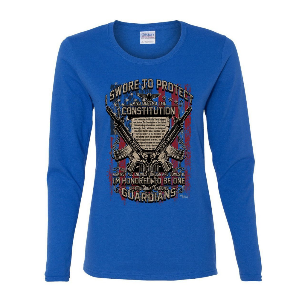 DEFEND THE CONSTITUTION swore to protect women's long sleeve tee guardian nation royal blue