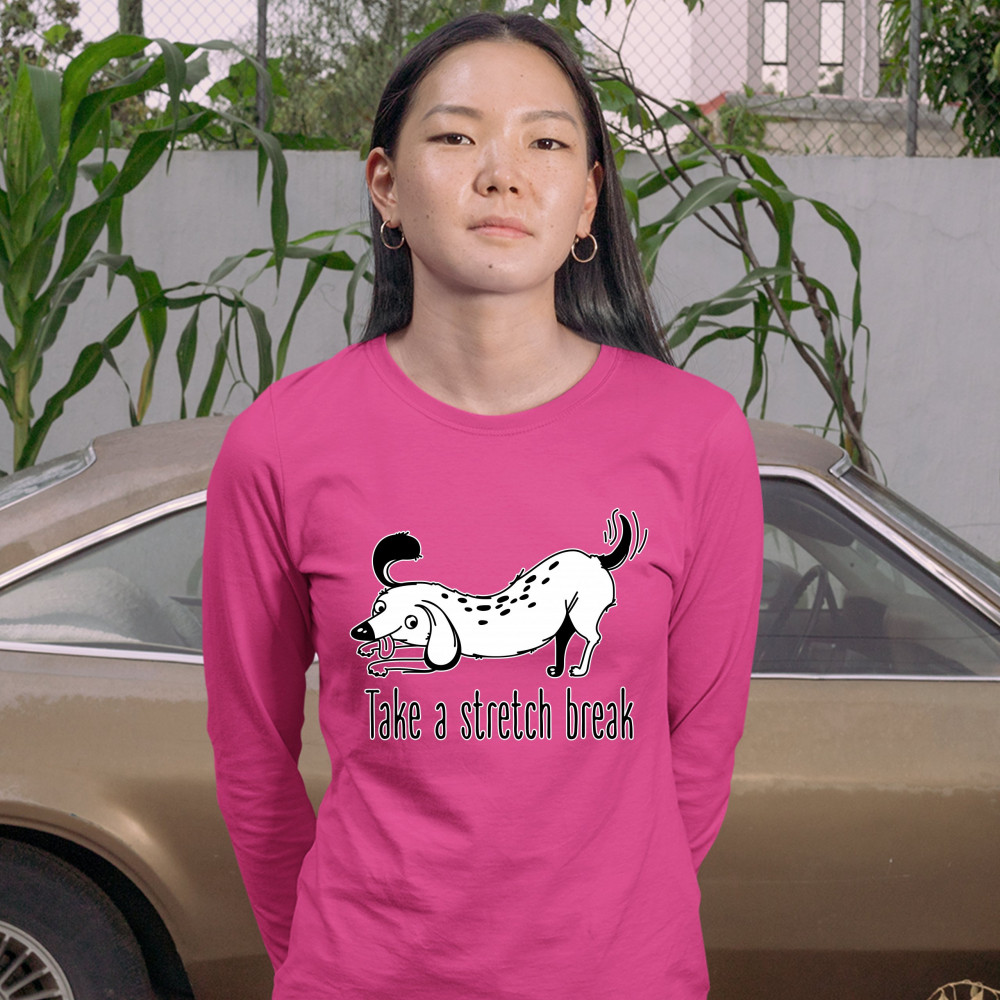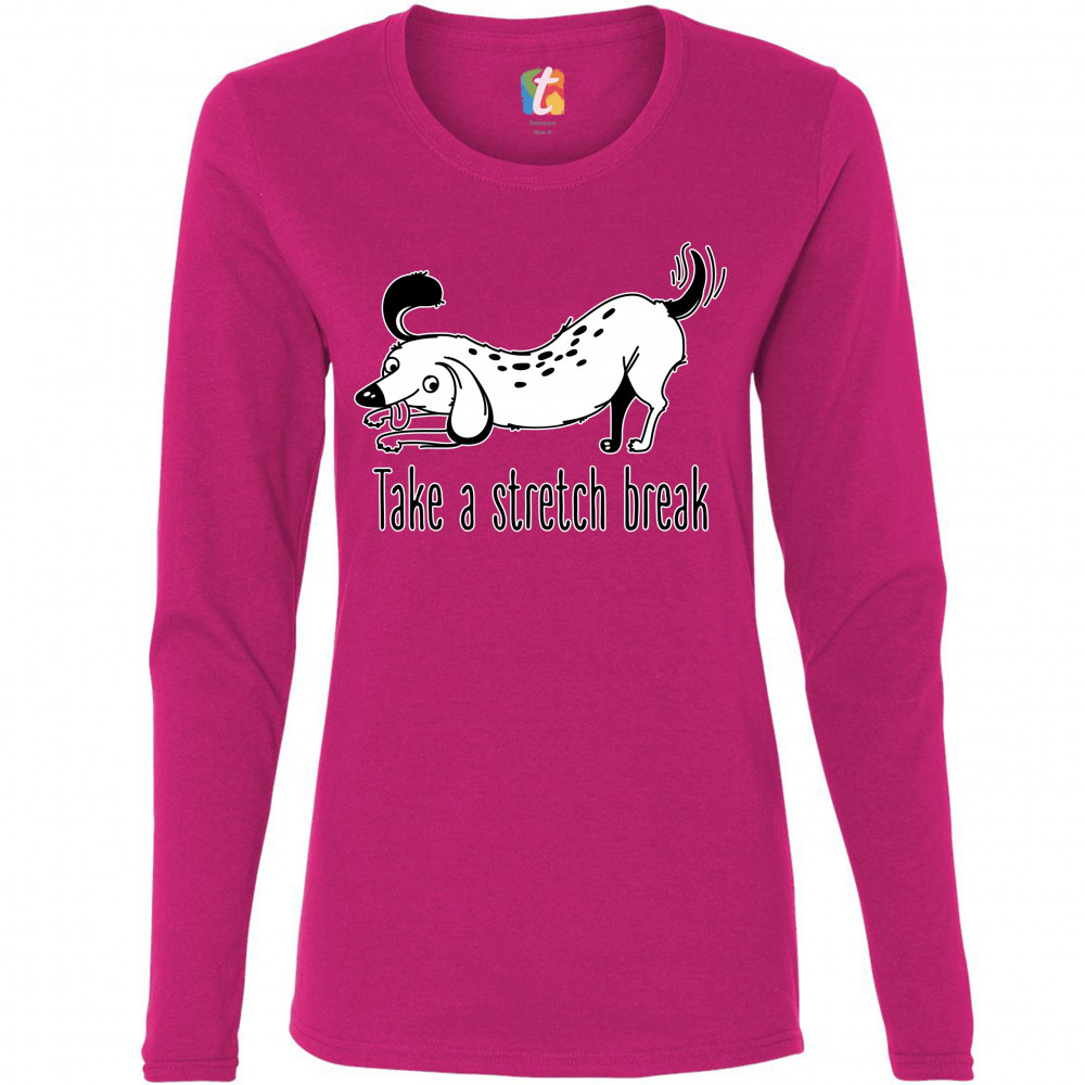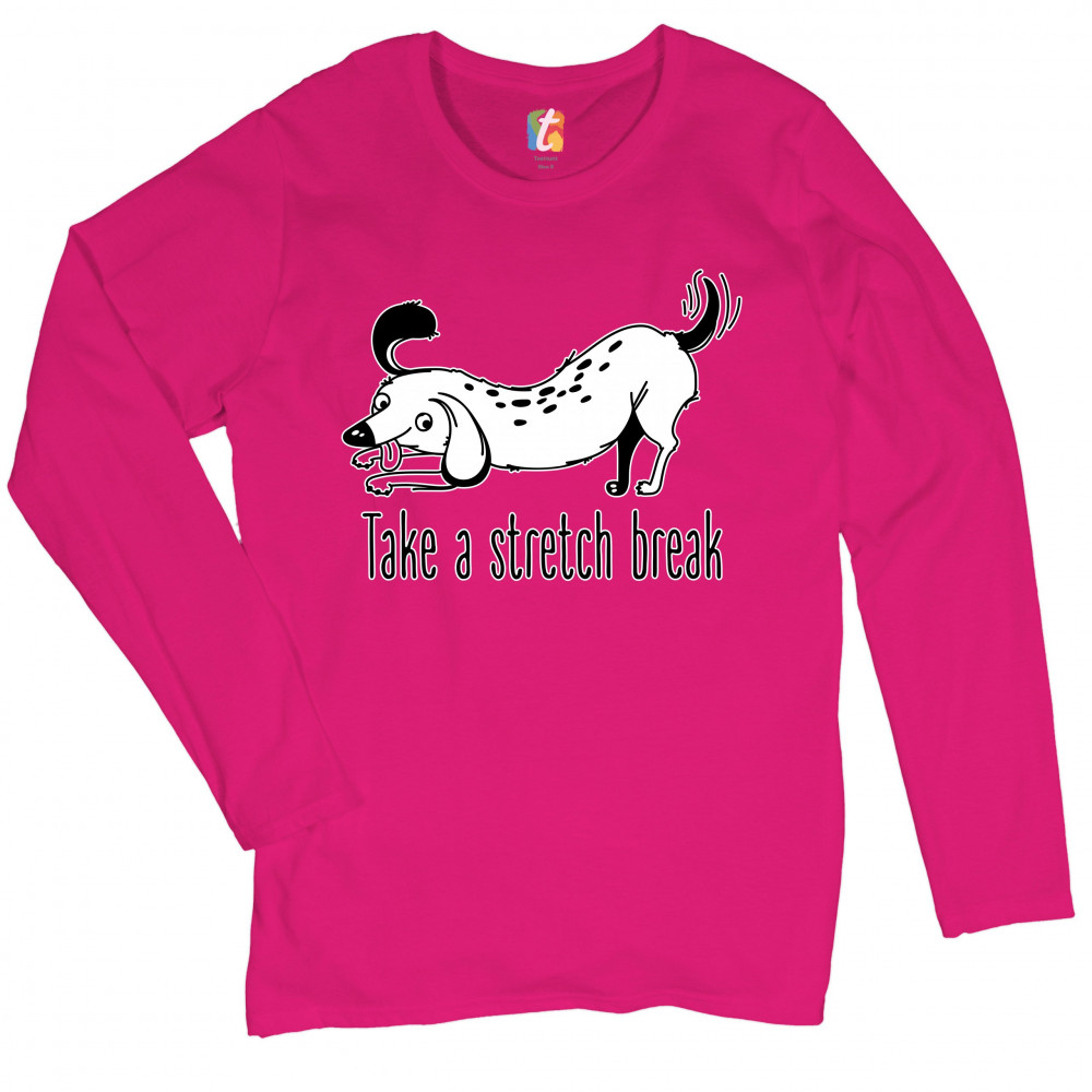 TAKE A STRETCH BREAK women's long sleeve t-shirt dachshund dog lover pet owner pink