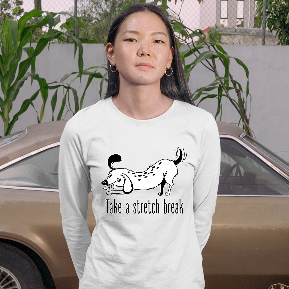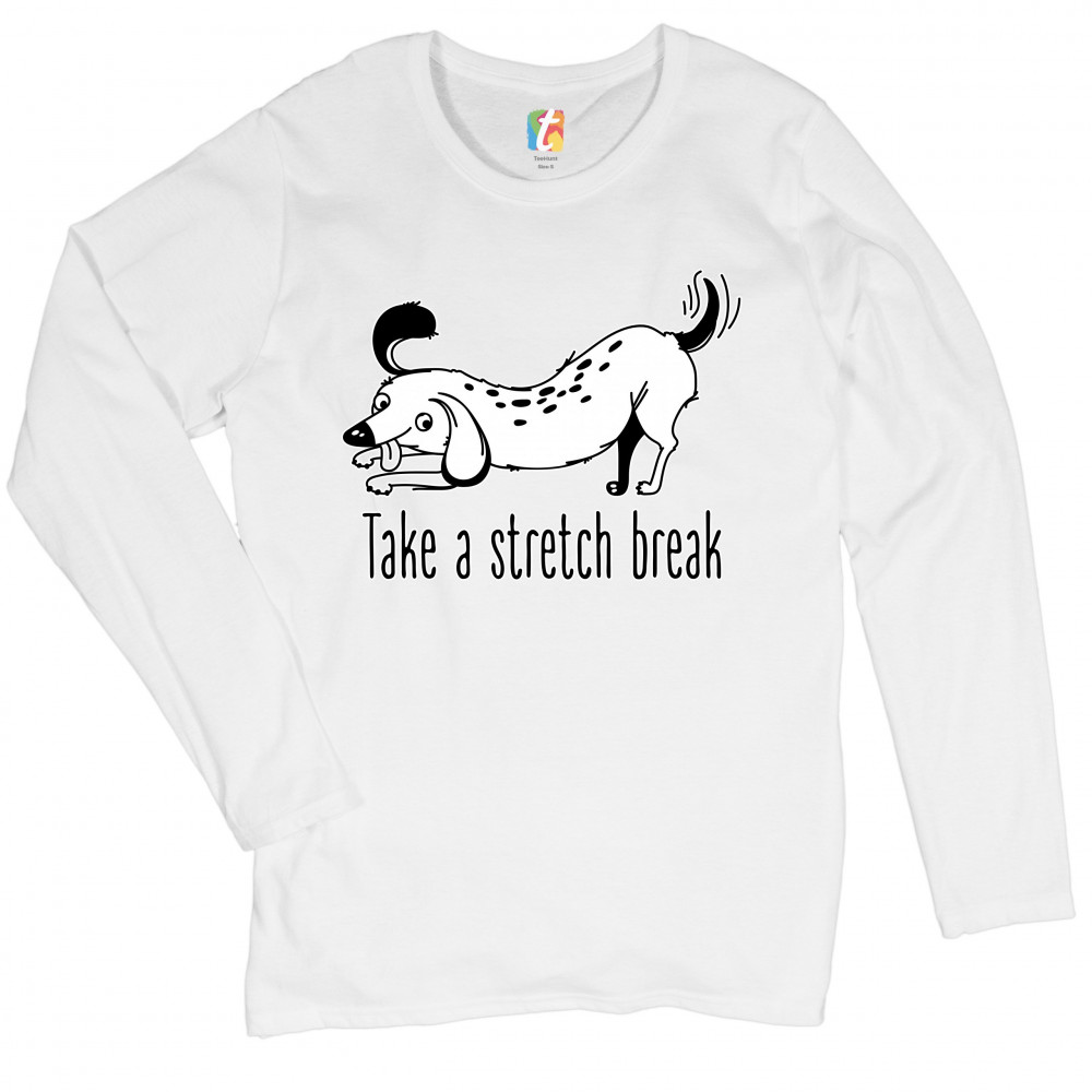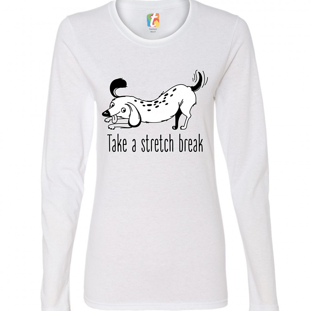 TAKE A STRETCH BREAK women's long sleeve t-shirt dachshund dog lover pet owner white
