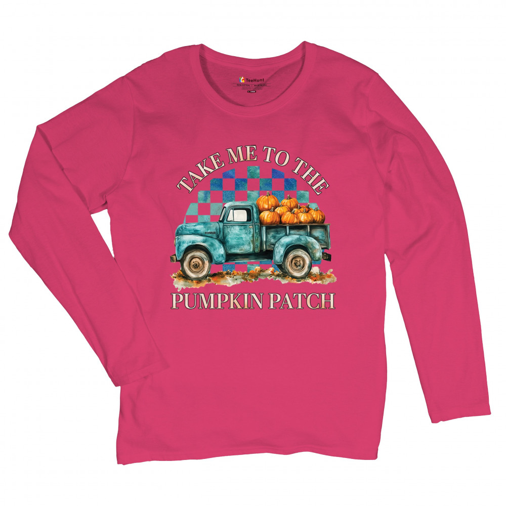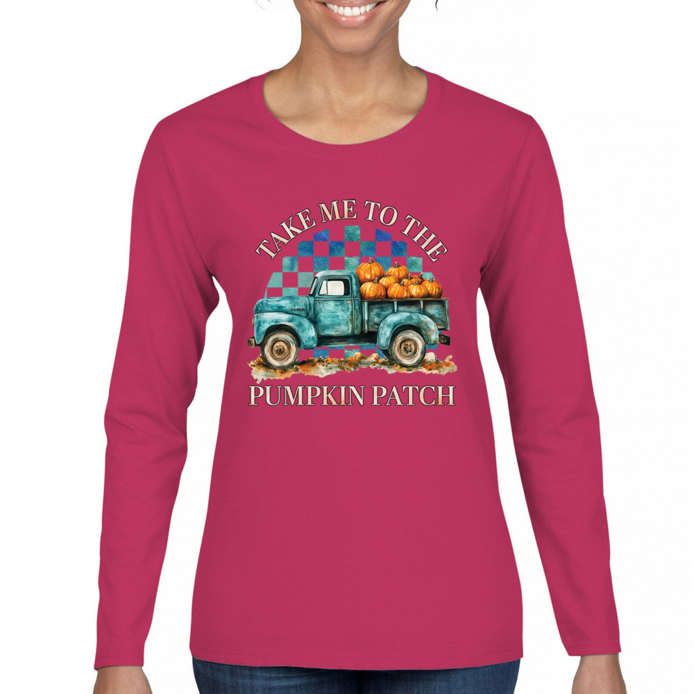 Celebrate autumn in style with the "Take Me to the Pumpkin Patch" design, featuring a vintage truck and festive pumpkins—perfect for fall lovers!