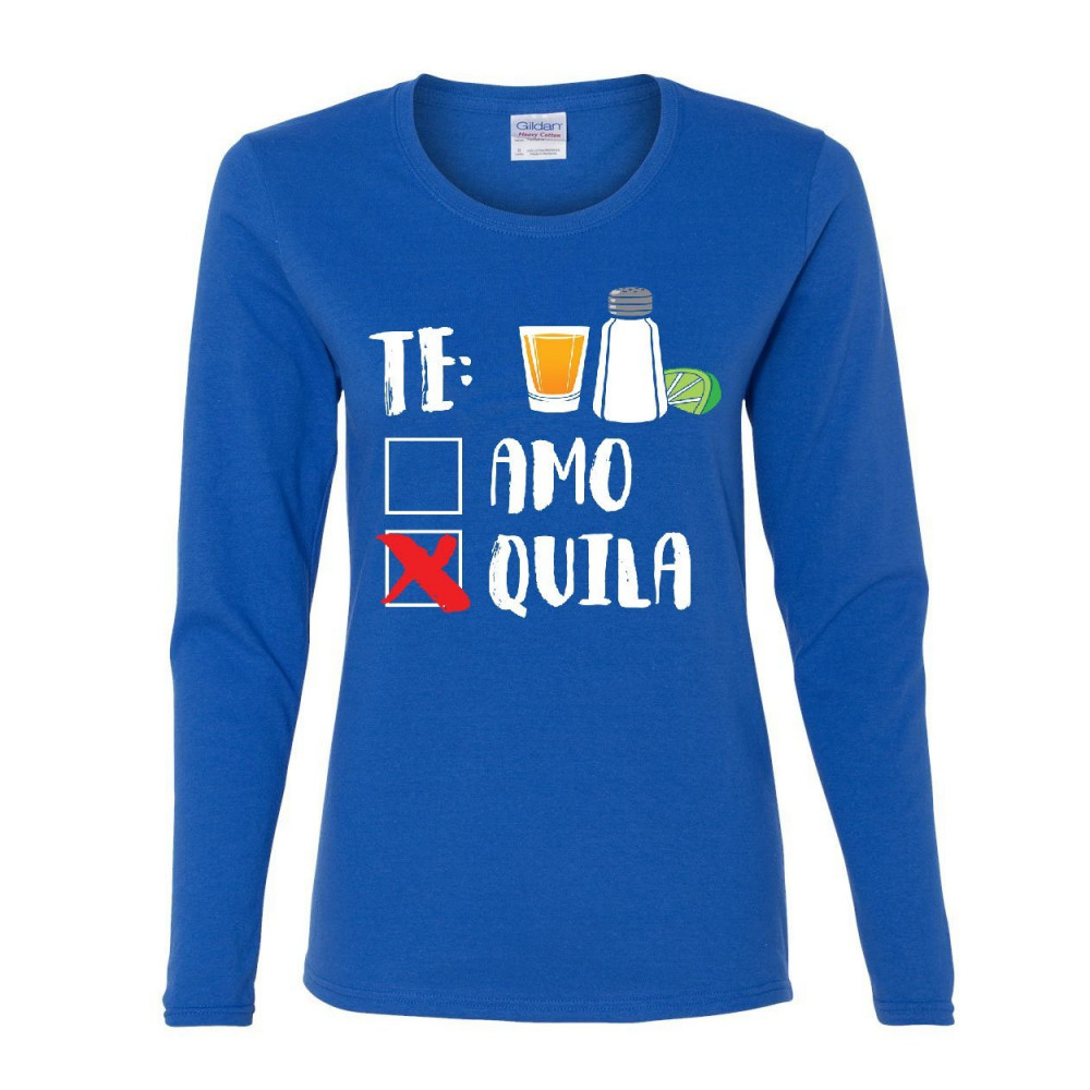 TE AMO OR TEQUILA women's long sleeve tee funny cinco de mayo & drinko mexican royal blue