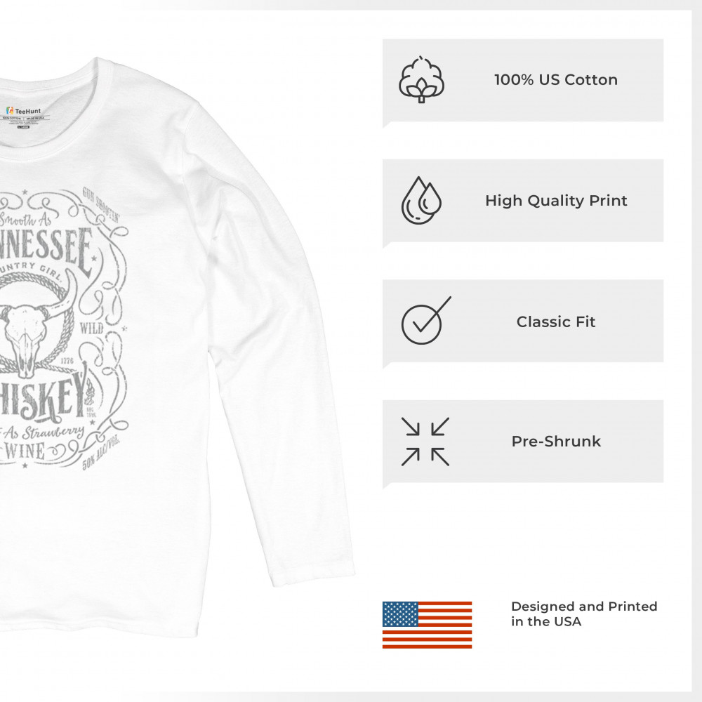 Smooth As Tennessee Whiskey, Sweet As Strawberry Wine. This country girl design delivers retro charm with bold lettering, a vintage bull skull, and classic southern pride. Perfect for cowgirls who love dirt roads, music festivals, rodeos, or a night of whiskey and wine under the stars.