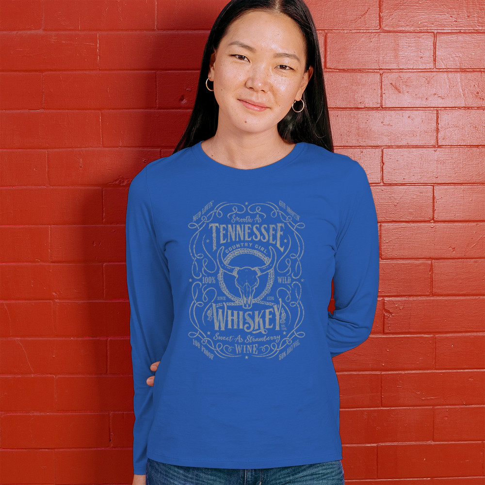 Country girl whiskey design with vintage bull skull, southern charm, and retro Tennessee pride. Perfect for rodeos, parties, or chill nights.