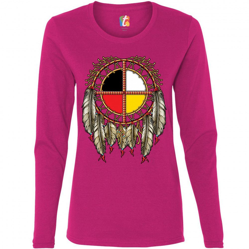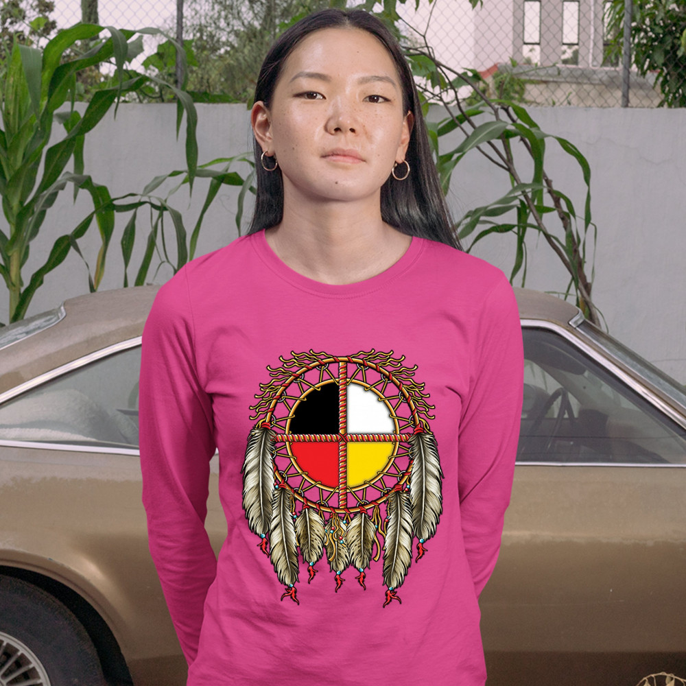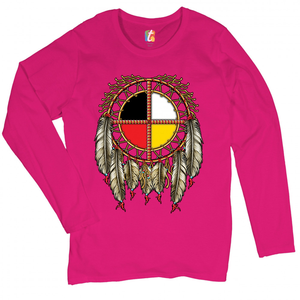 THE MEDICINE WHEEL DREAMCATCHER women's long sleeve t-shirt native american pink