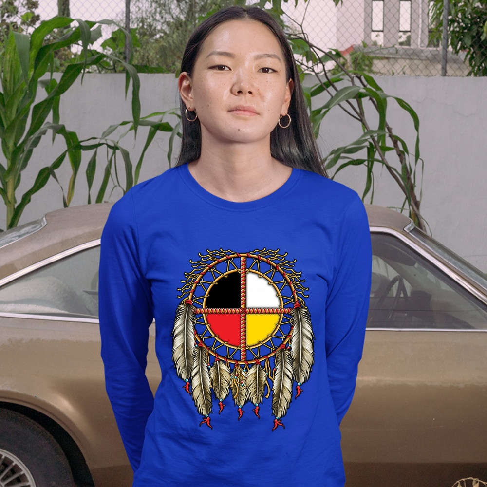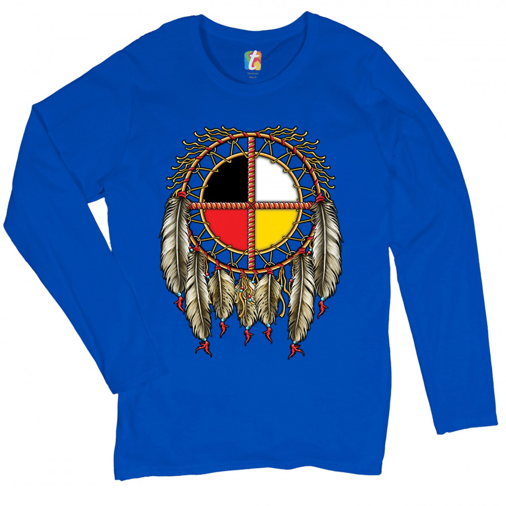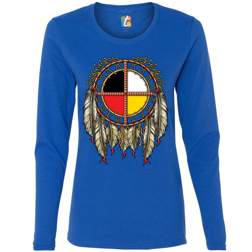 THE MEDICINE WHEEL DREAMCATCHER women's long sleeve t-shirt native american royal blue