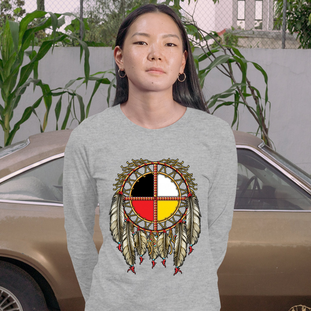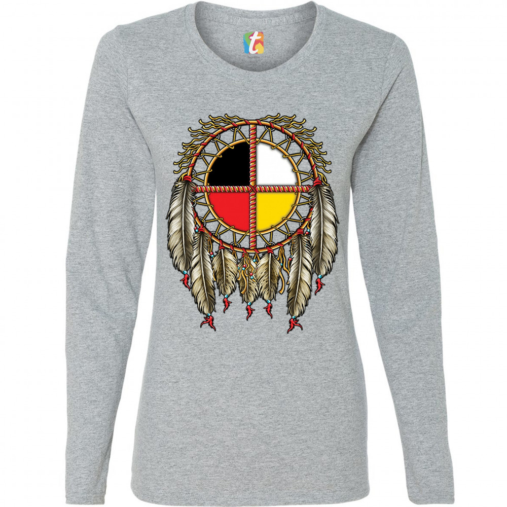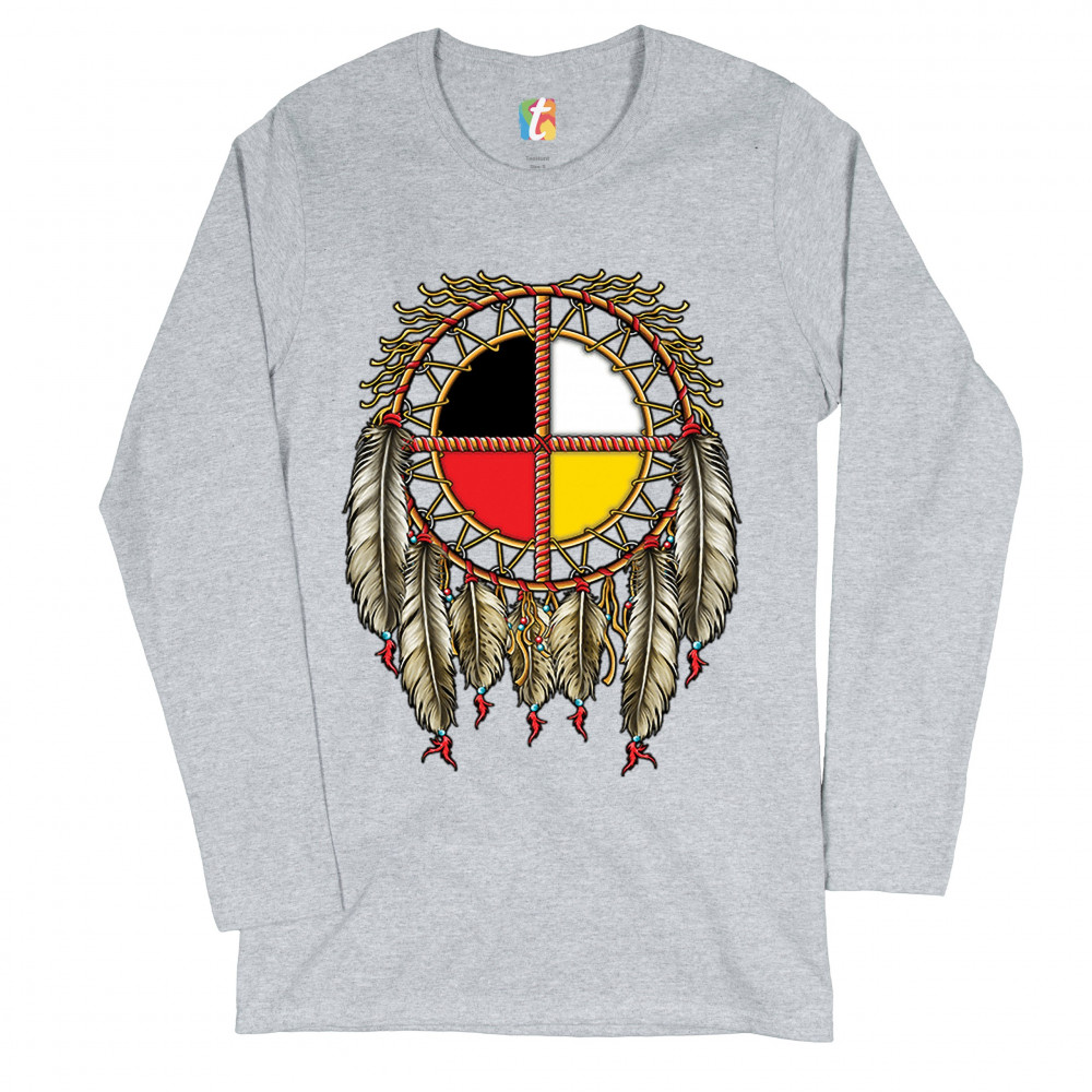 THE MEDICINE WHEEL DREAMCATCHER women's long sleeve t-shirt native american gray