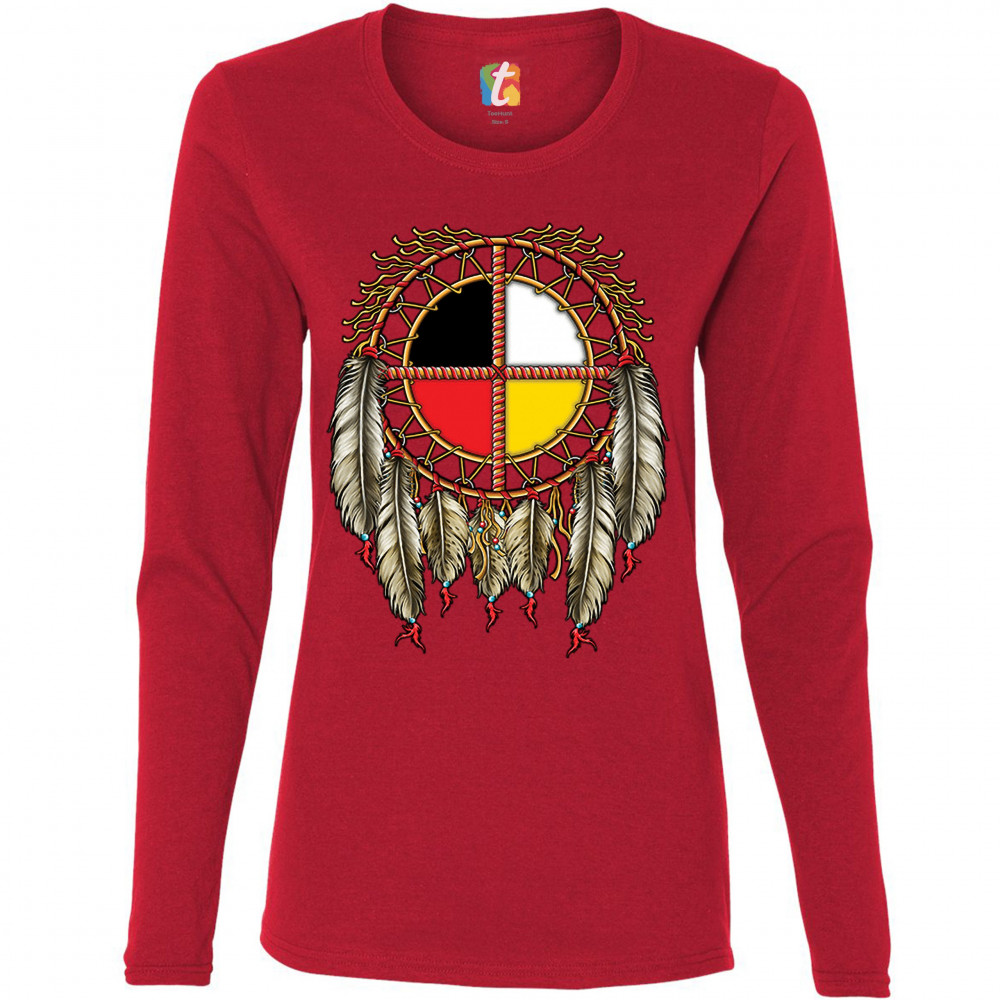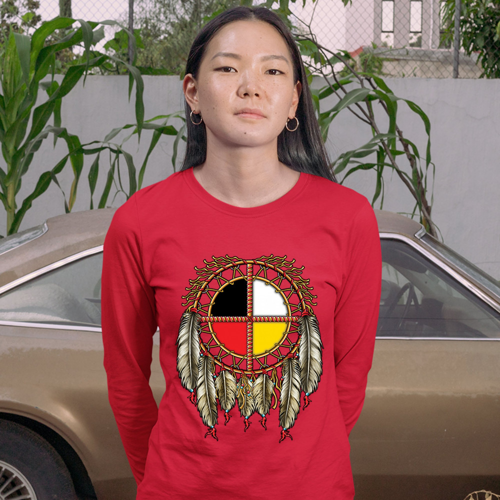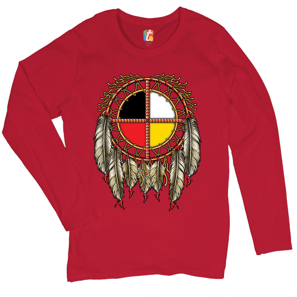 THE MEDICINE WHEEL DREAMCATCHER women's long sleeve t-shirt native american red