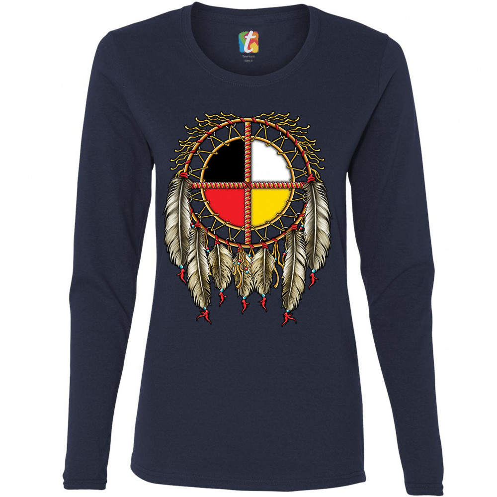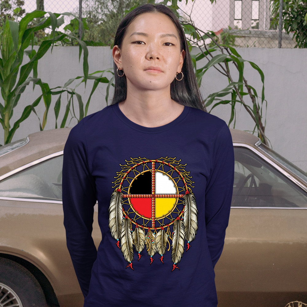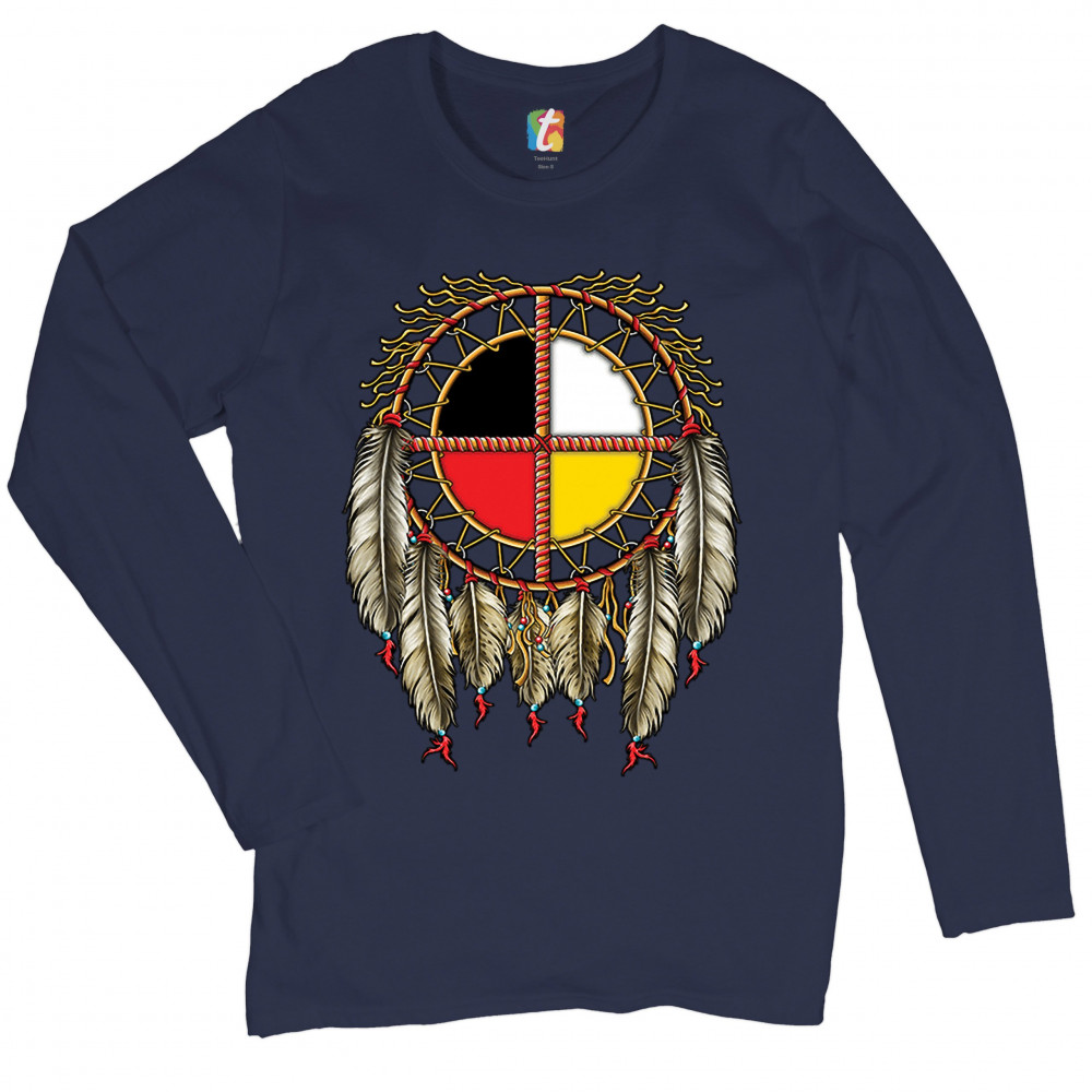 THE MEDICINE WHEEL DREAMCATCHER women's long sleeve t-shirt native american navy blue
