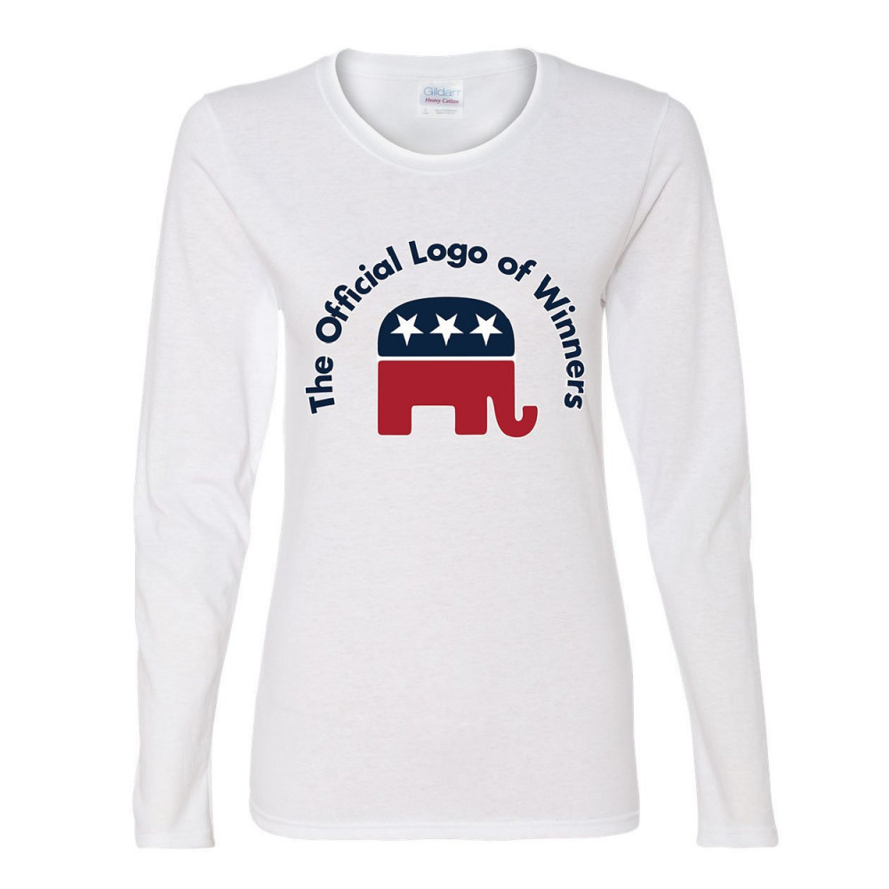 THE OFFICIAL LOGO OF WINNERS- REPUBLICANS the official logo of winners women's long sleeve tee republican party elephant white
