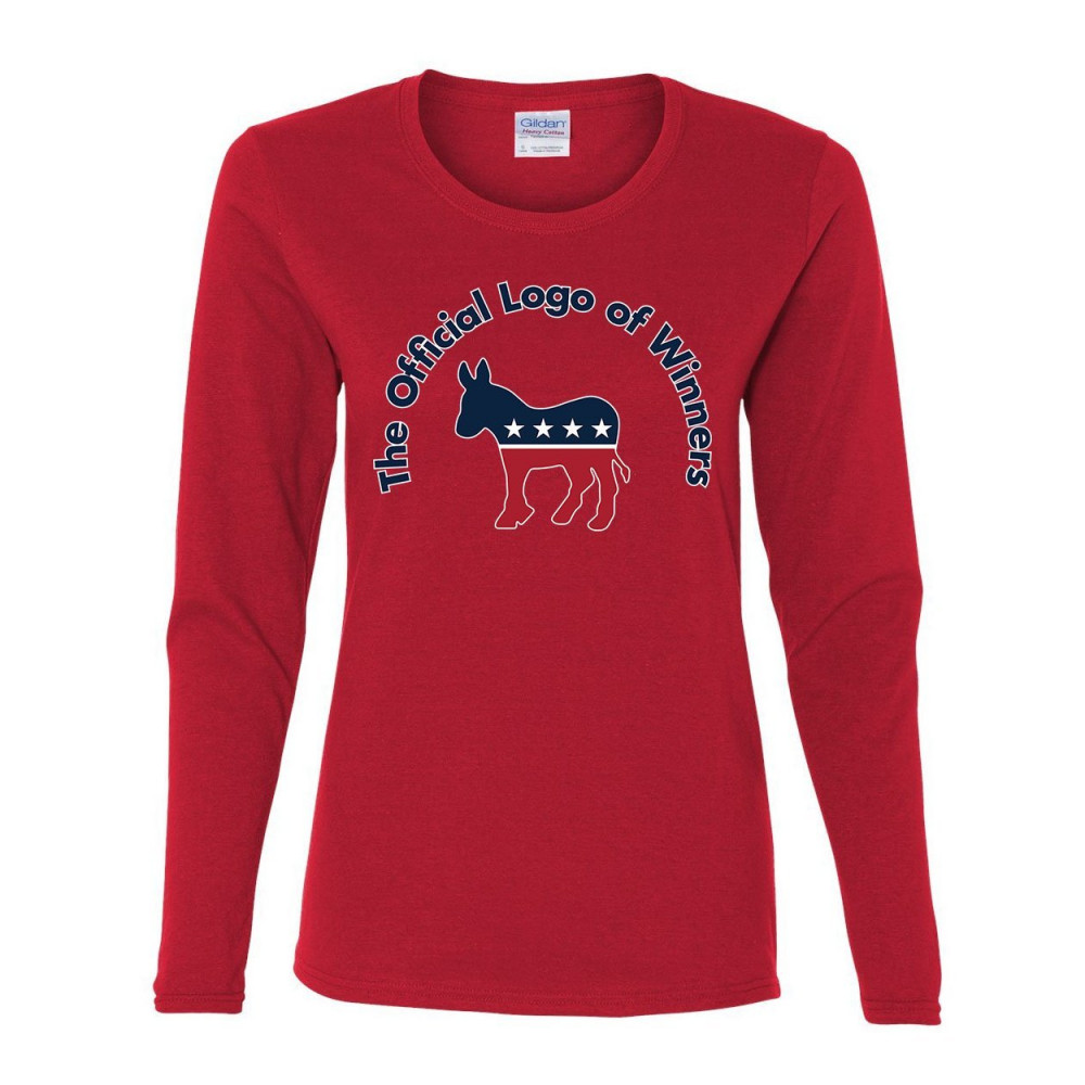 THE OFFICIAL LOGO OF WINNERS- DEMOCRATS the official logo of winners women's long sleeve tee usa democratic party donkey red
