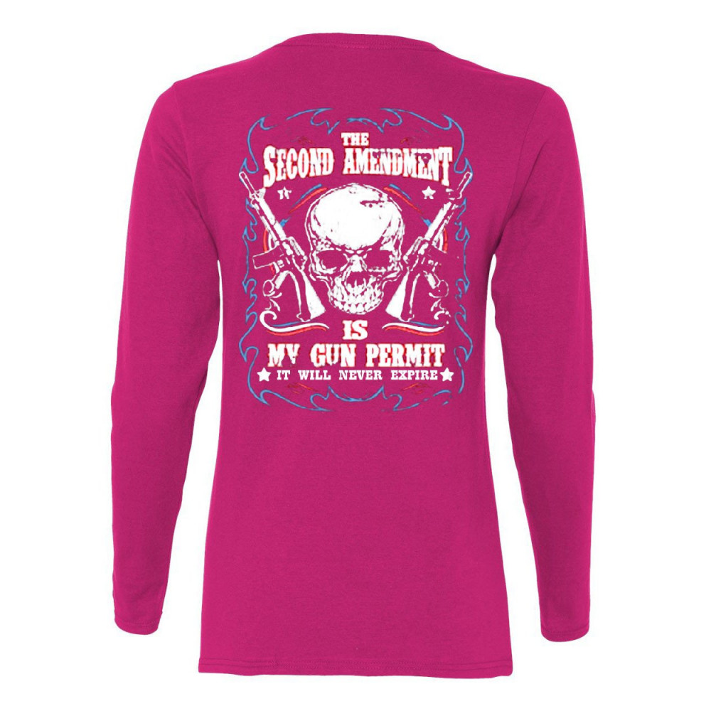 2ND AMENDMENT IS MY GUN PERMIT long sleeve t-shirt gun rights pink