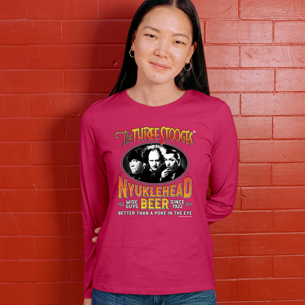 Celebrate the kings of comedy with our exclusive Three Stooges Nyuklehead Beer shirt. Featuring the legendary faces of Moe, Larry, and Curly, this tee is a tribute to the humor that has been tickling funny bones since 1922. Printed with "Wise Guys Beer," it's a playful nod to those who love a good laugh along with their brew. Whether you're a long-time Stooges aficionado or discovering their antics for the first time, this shirt is a conversation starter for any casual outing or Stooges-themed event.
