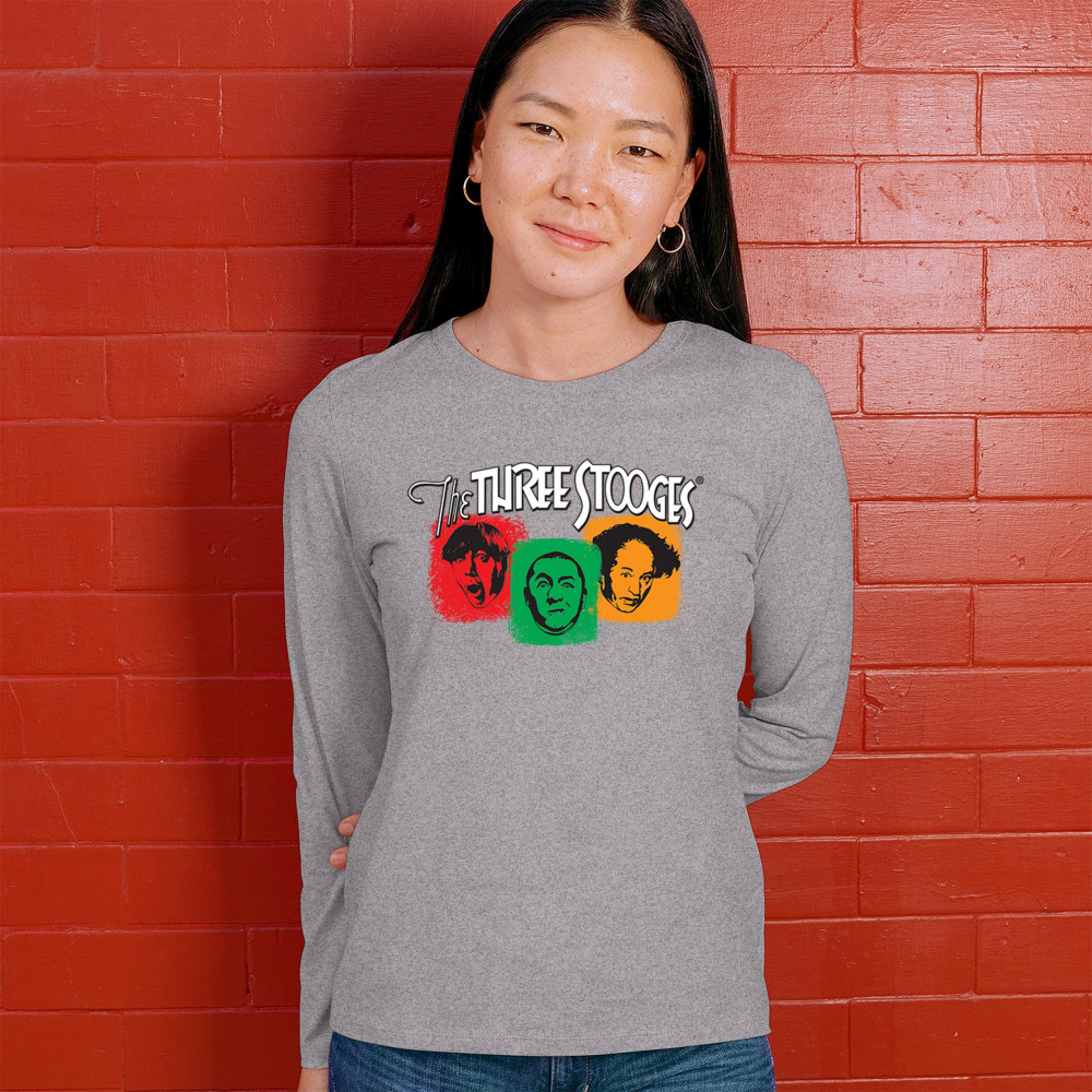 Capturing the essence of comedy, this design brings The Three Stooges into the modern era with a vivid, graphic portrayal. Each Stooge is highlighted in a distinct hue—red for Moe, green for Larry, and orange for Curly—mirroring their vibrant personalities that have transcended generations. This piece is a visual celebration, a colorful tribute to the laughter and joy they continue to bring into the world.