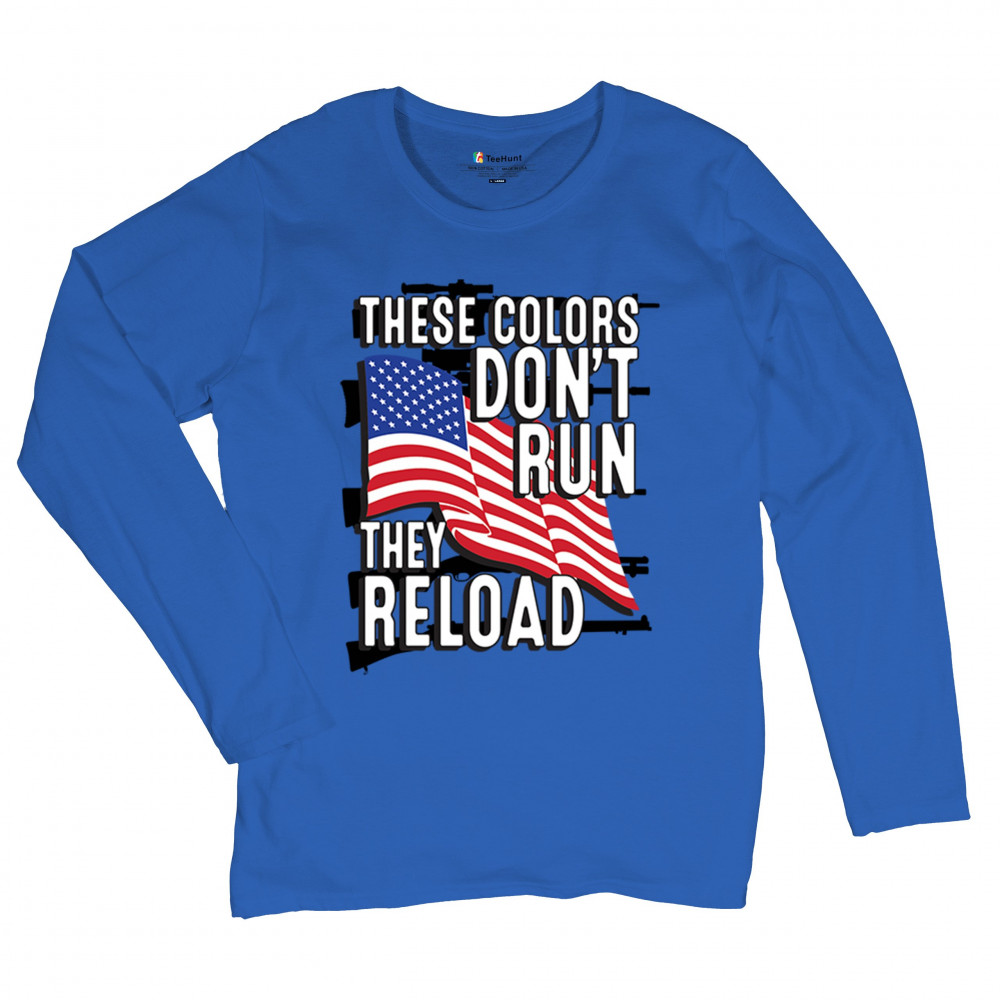 Discover the tee that boldly proclaims American resilience and liberty: 'These Colors Don't Run, They Reload'—a must-have for patriots and veterans.
