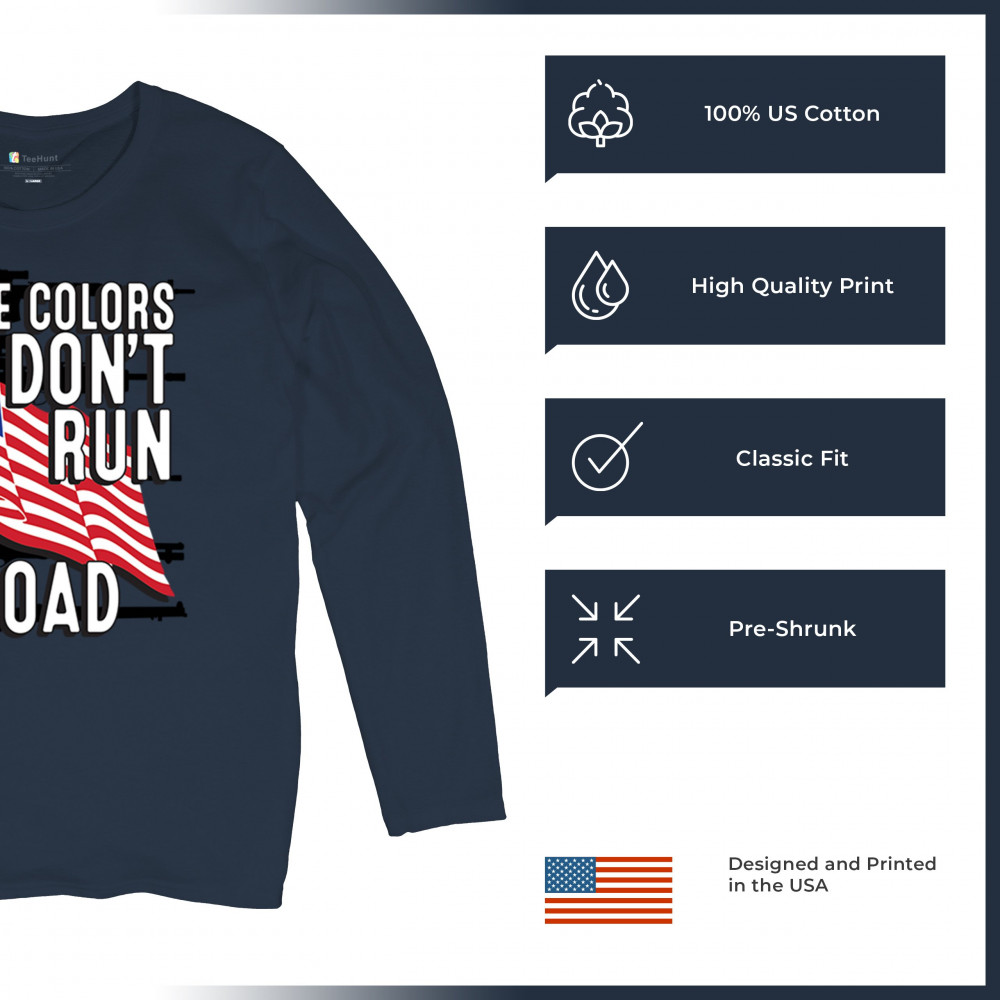 Embrace the fierce declaration of American resilience with our premium graphic tee, featuring the powerful motto, 'These Colors Don't Run, They Reload.' This shirt champions the indomitable spirit symbolized by the Gadsden flag and the 4th Amendment. Ideal for the proud, the brave, and the free, this tee is a nod to every DD 214-carrying veteran and liberty-loving citizen. Let it be known: you stand with the militia, you stand with freedom.