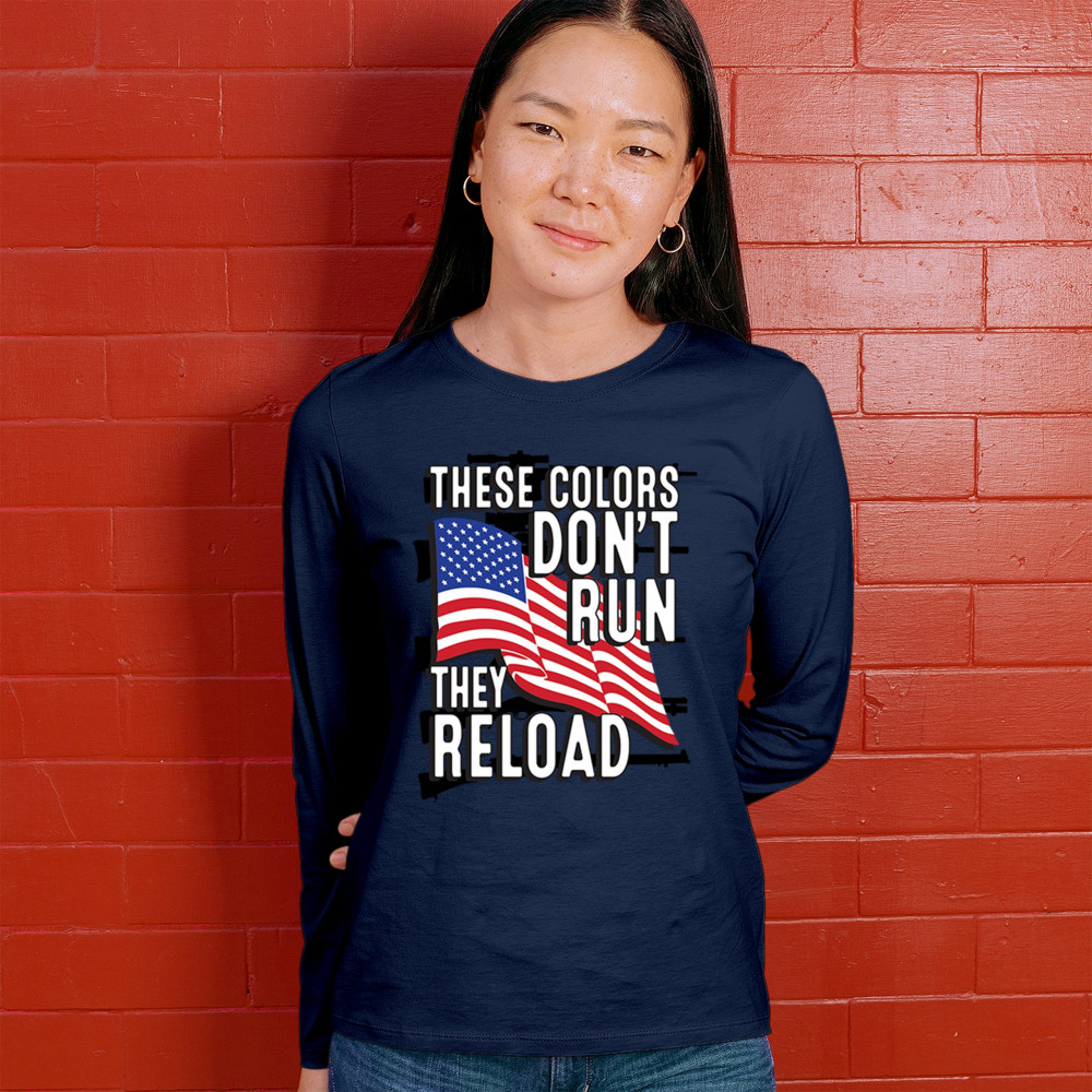 Discover the tee that boldly proclaims American resilience and liberty: 'These Colors Don't Run, They Reload'—a must-have for patriots and veterans.