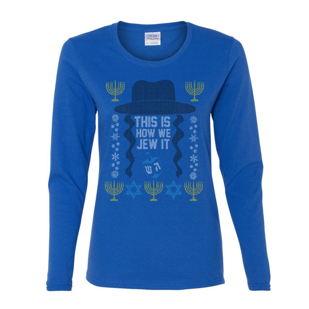 THIS IS HOW WE JEW IT women's long sleeve tee funny menorah star of david jewish royal blue