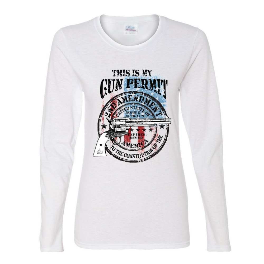 THIS IS MY GUN PERMIT women's long sleeve tee 2nd amendment right to bear arms white