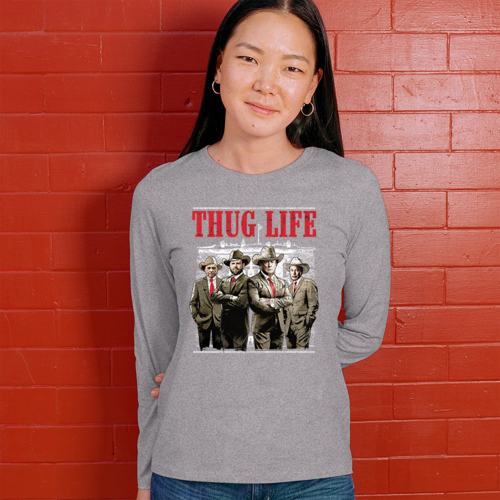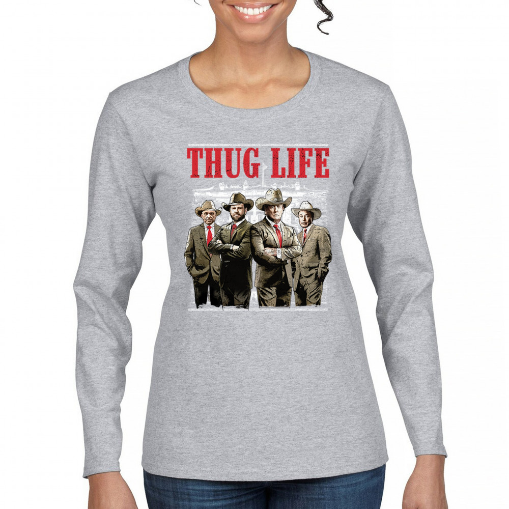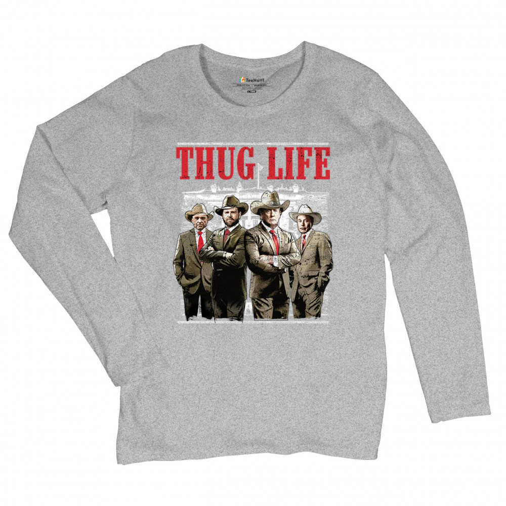 Make a statement with the Thug Life T-shirt, a must-have for every Republican and Trump supporter who stands for America First. Designed for those who believe in We The People Have Spoken, this shirt is perfect for rallies, events, or everyday wear. Featuring bold imagery and high-quality materials, it's a tribute to conservative values, the Red Wave, and the party of common sense. Get yours today and show your patriotic spirit.