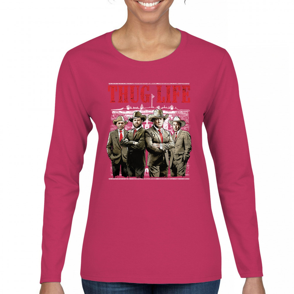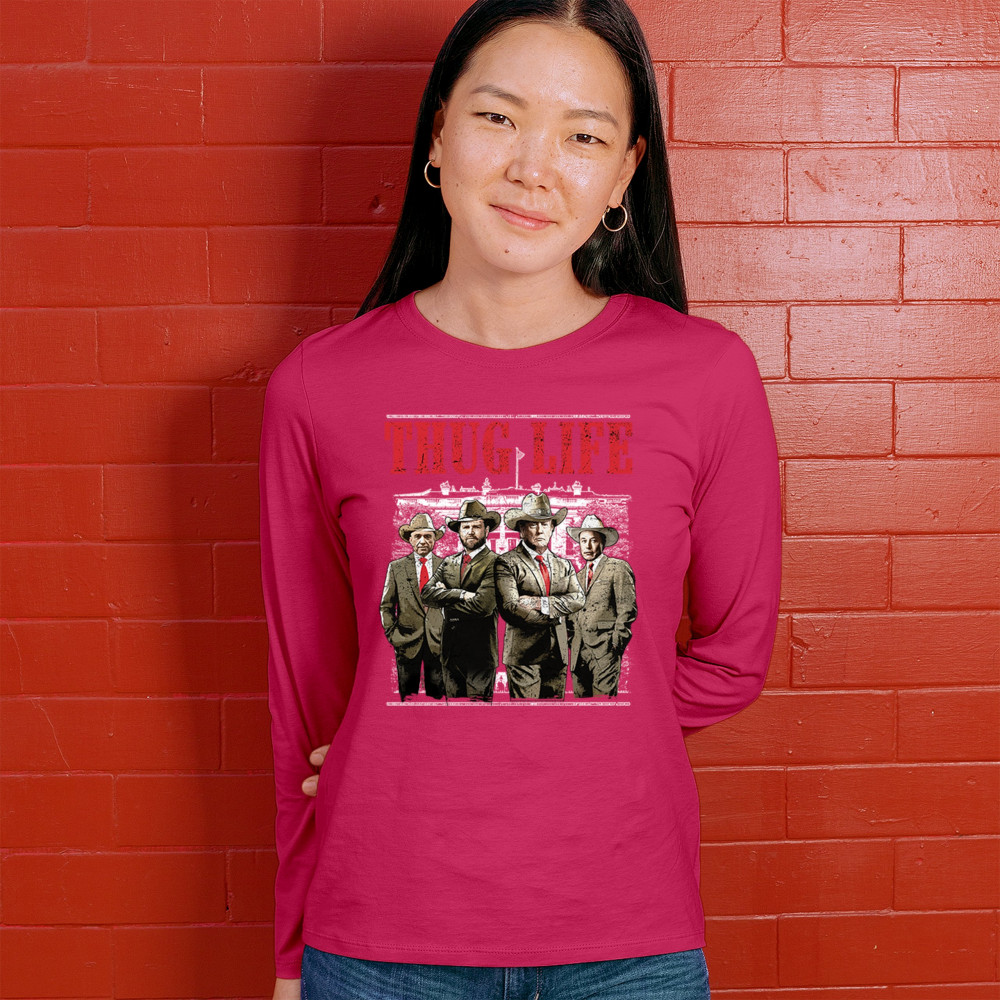 Make a statement with the Thug Life T-shirt, a must-have for every Republican and Trump supporter who stands for America First. Designed for those who believe in We The People Have Spoken, this shirt is perfect for rallies, events, or everyday wear. Featuring bold imagery and high-quality materials, it's a tribute to conservative values, the Red Wave, and the party of common sense. Get yours today and show your patriotic spirit.