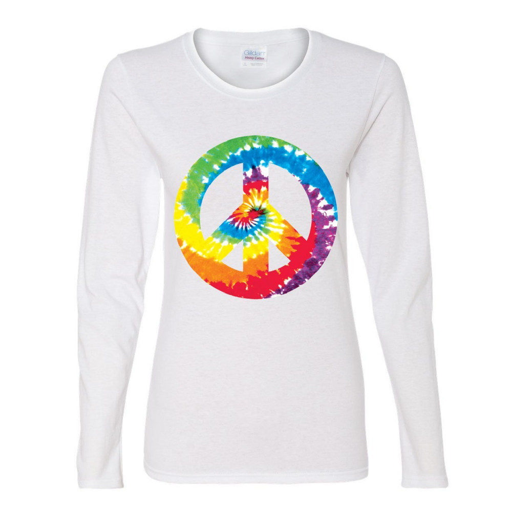 TIE DYE PEACE SYMBOL 80'S women's long sleeve tee hippie happiness love not war white