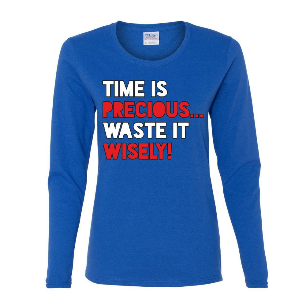 TIME IS PRECIOUS WASTE IT WISELY! time is precious waste it wisely women's long sleeve tee college humor lazy fun royal blue