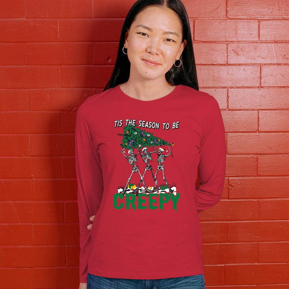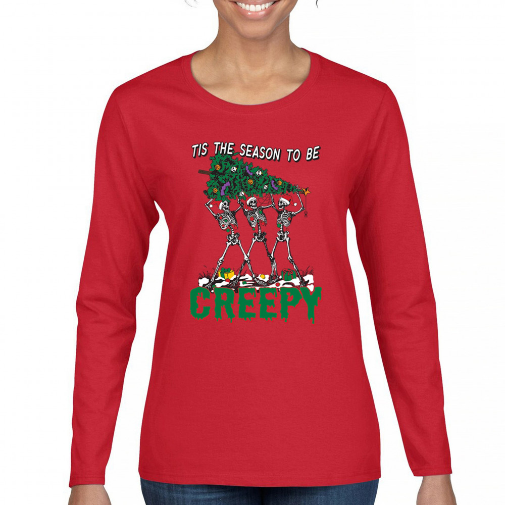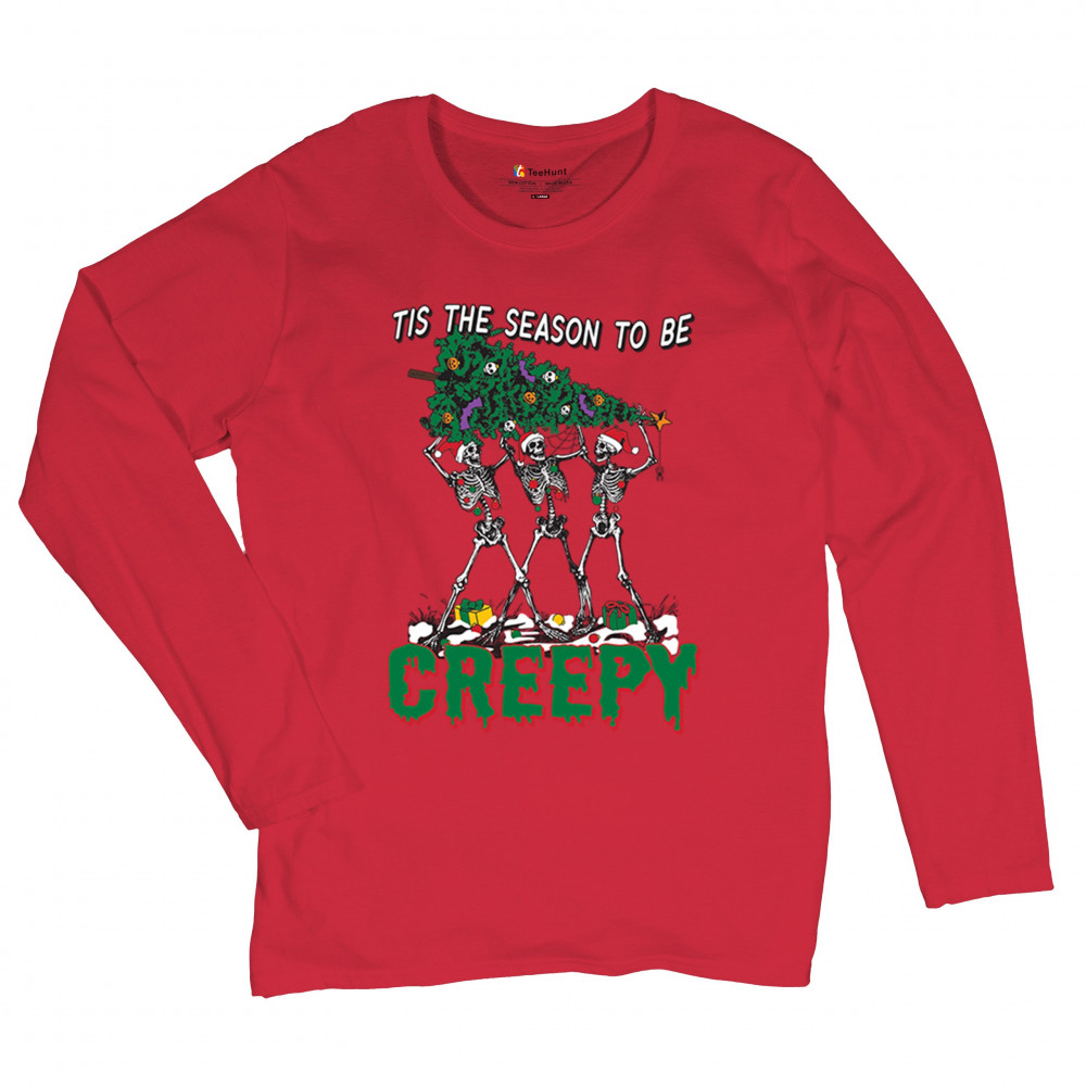 Spooky meets festive with "Tis the Season to Be Creepy" skeleton Christmas design. Perfect for holiday parties, Secret Santa, and unique gifts.